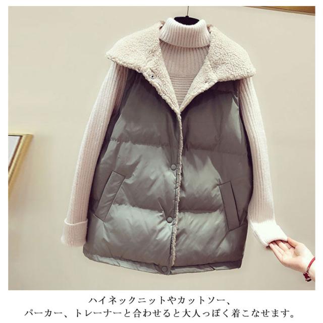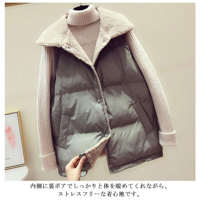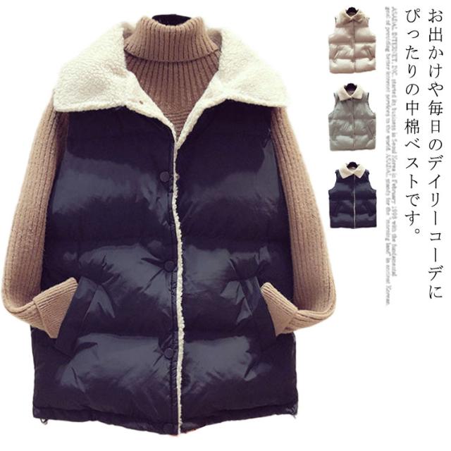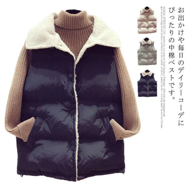 中綿ベスト 裏ボア ベスト カジュアル ポケット付き チョッキ レディース お洒落 防寒対策 保温 大きいサイズ 冬物 ゆったり 普段着 お出かけ あったか