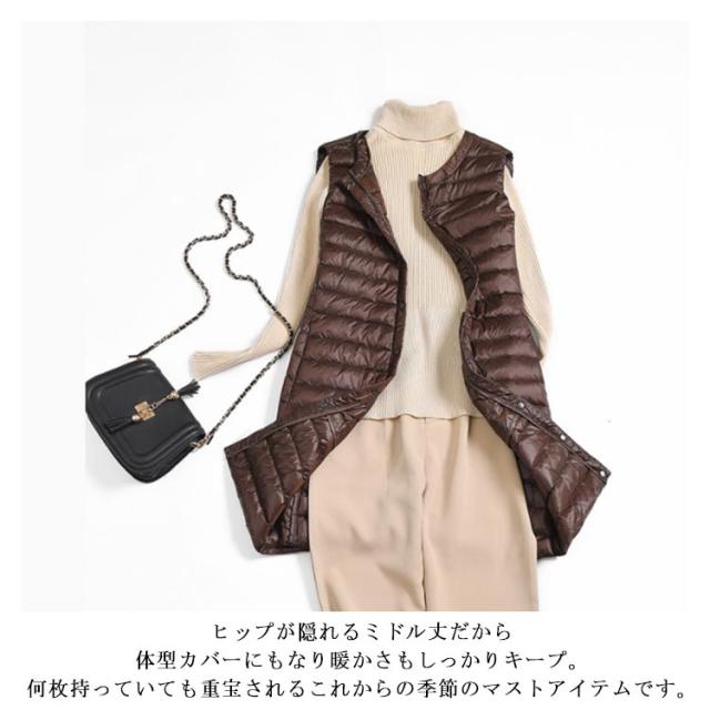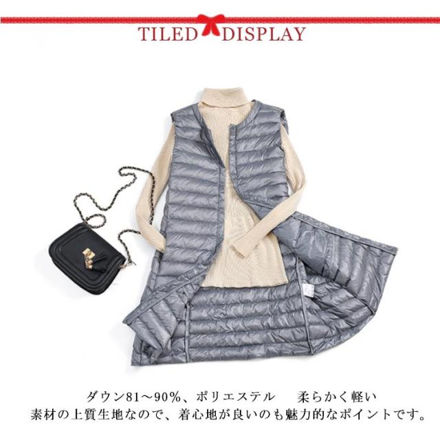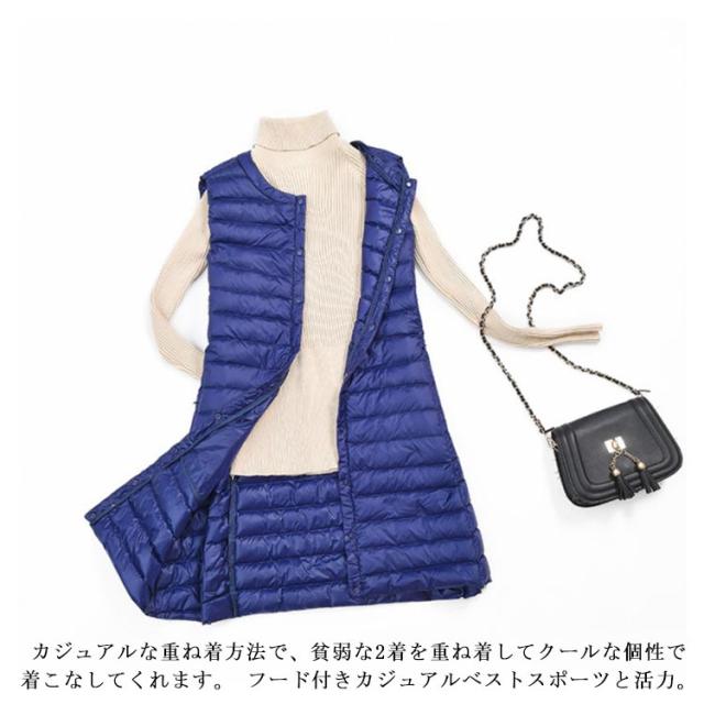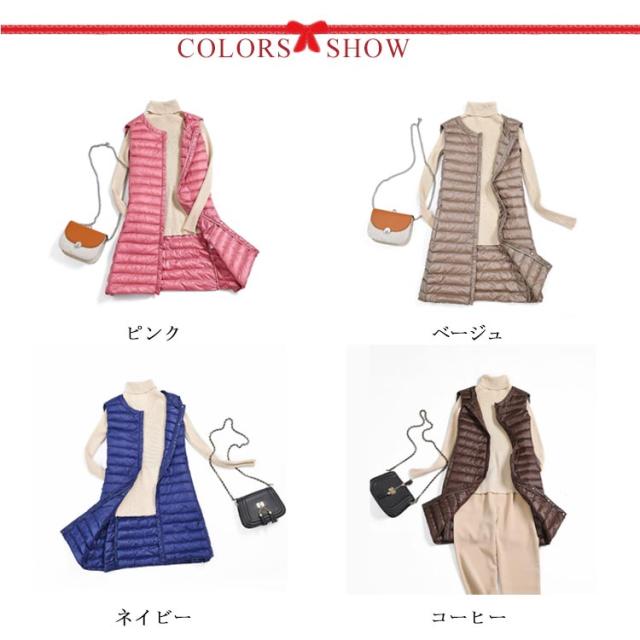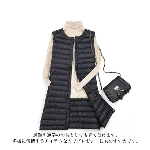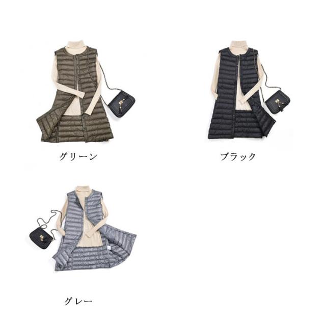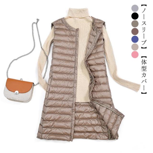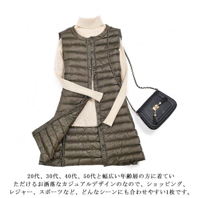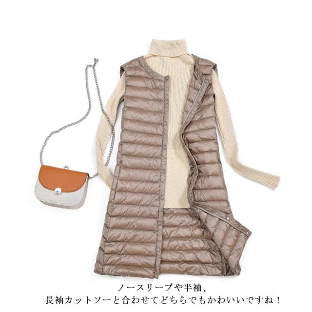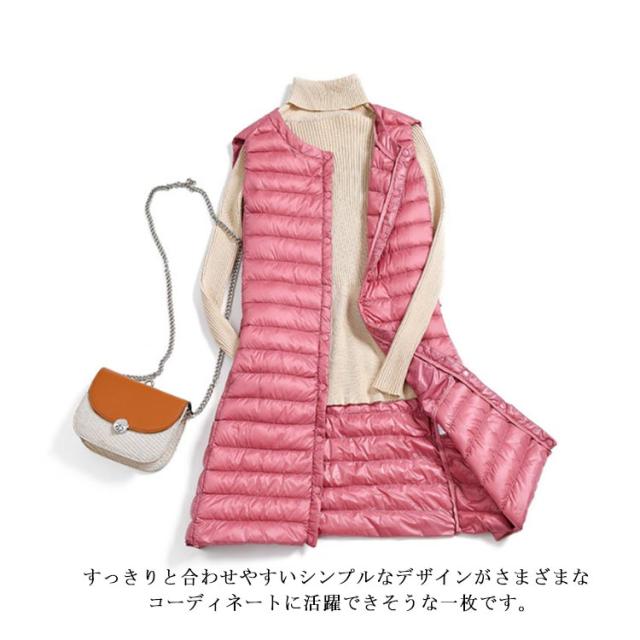 全7色!ダウンベスト ロング 軽量 あったか インナーダウンベスト レディース ポケット 秋冬 ノーカラー インナーダウン 大きいサイズ 無地 シンプル 防寒 保温 暖かい ラウンドネック