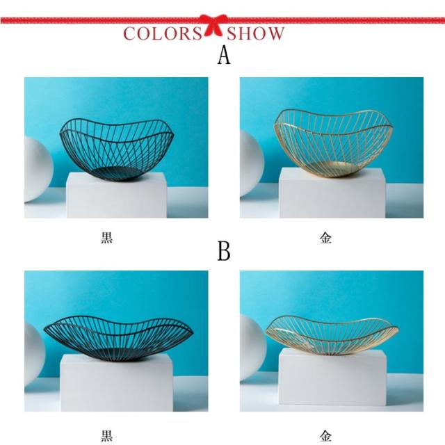 【5種類×2色】ワイヤーバスケット 北欧風 黒 金 フルーツバスケット おしゃれ お菓子入れ フルーツ皿 フルーツボール 菓子器 果物かご 果物収納 小物 収納 家庭用 リビング トレー プレート 盛り付け
