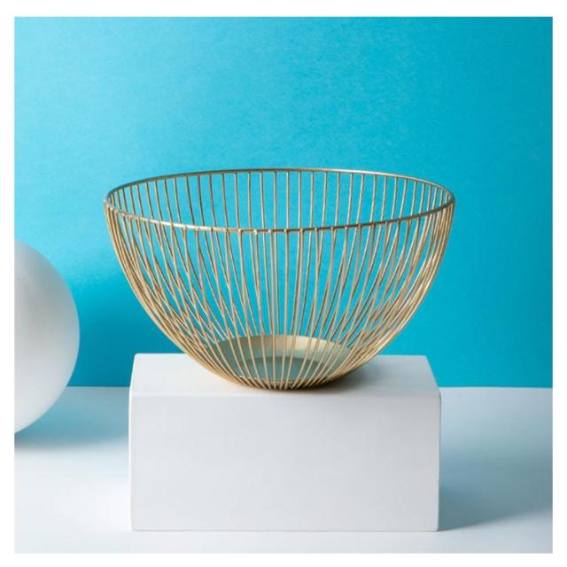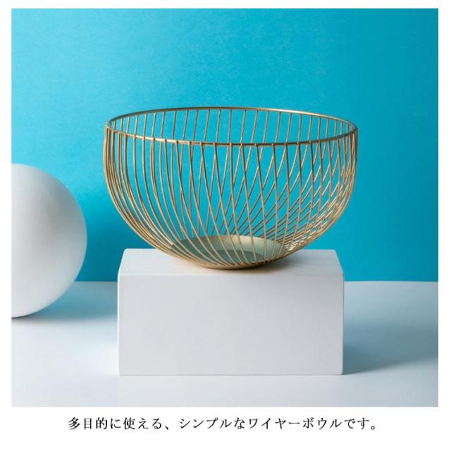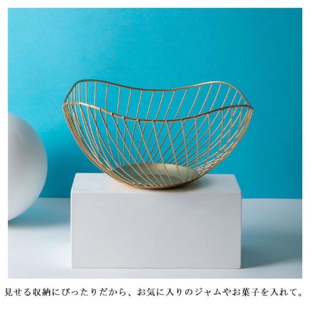| ゴールドとブラックのカラーで仕上げた、シックなワイヤーボウル。 ダイヤモンドカットのような、スッキリとした多面体デザインです。 ワイヤー製なので、テーブルに置いても圧迫感がありません。 見せる収納にびったりだから、お気に入りのジャムやお菓子を入れて。 玄関先でお客様のスリッパを入れて、小物入れとしても◎ 多目的に使える、シンプルなワイヤーボウルです。 | |