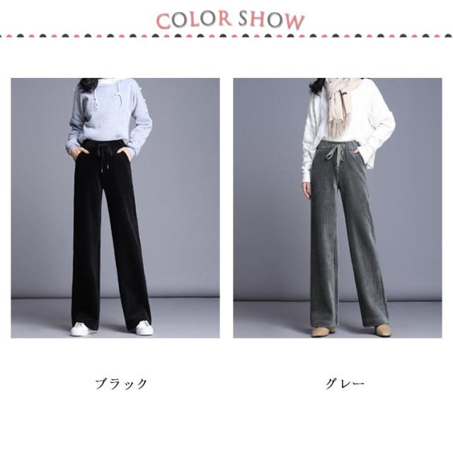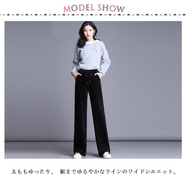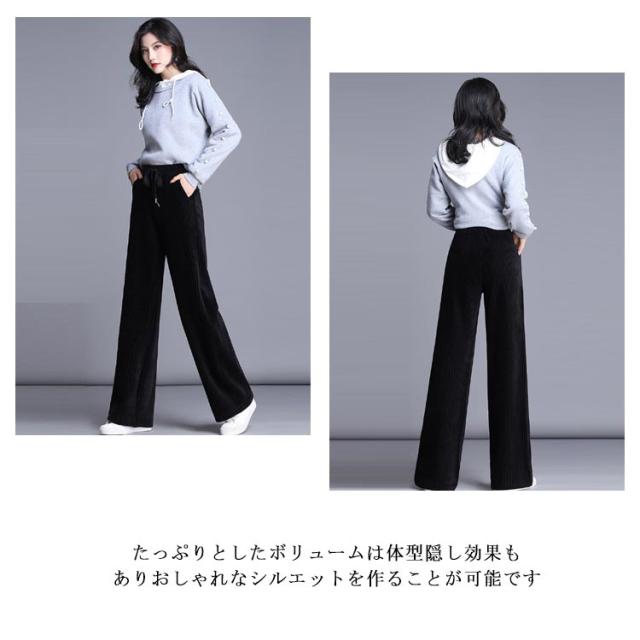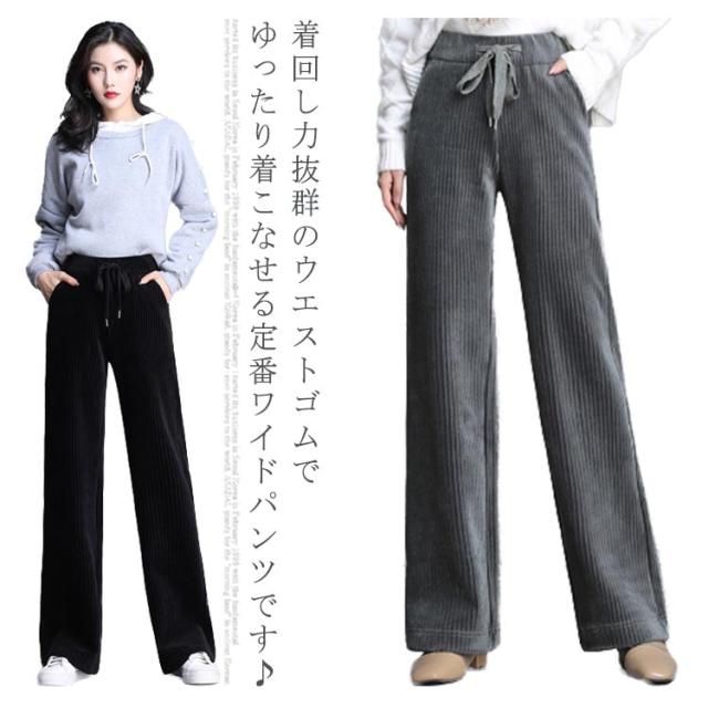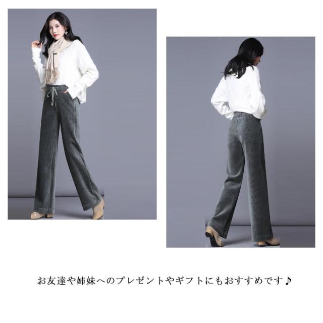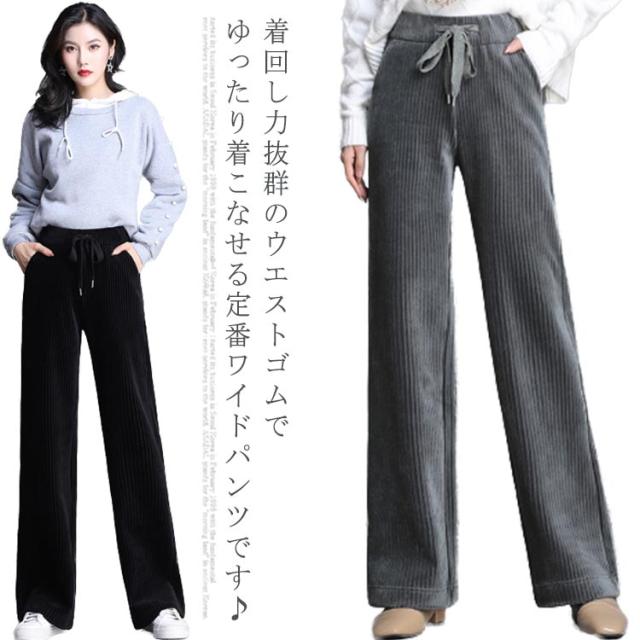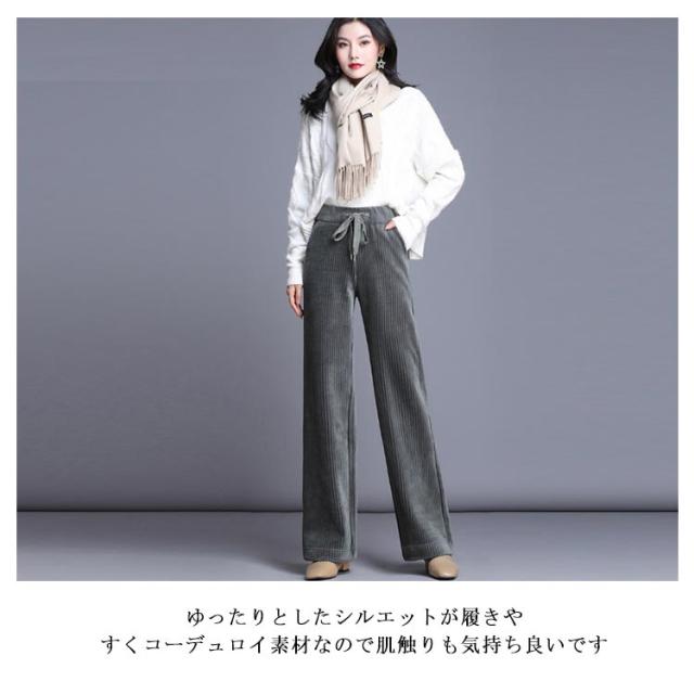 コーデュロイ ワイドパンツ レディース コーデュロイ 裏起毛 ガウチョパンツ ロングパンツ ズボン ロング丈 ウエストゴム 無地 秋服 秋冬 防寒 オフィス デーリー ルーズ カジュアル きれいめ