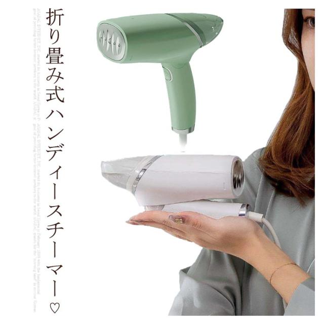 | 折り畳み式ハンディースチーマー? 衣類スチーマーでありながらプレスもできます。 ボタンを一回押すだけで連続スチーム、ハンガーに掛けたまま簡単にアイロン掛けできます。 120ml大容量タンク搭載し、一回給水すると10〜15 min連続利用できます。 折りたためばコンパクトになり、収納も持ち運びもしやすいので、自宅用だけでなく、旅行先や出張先でも手軽に使えます。 | |