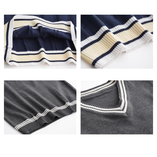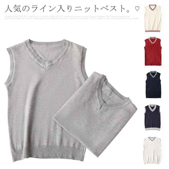 スクールベスト レディース 制服 女子高生 秋 セーター 制服ベスト 女の子 ライン入り ニットベスト 紺 ネイビー ホワイト Vネック 男女兼用 学生服 高校 中学 通学 女子 入学式 卒業式 JKベスト