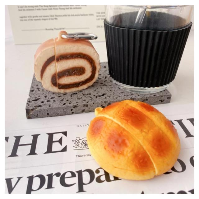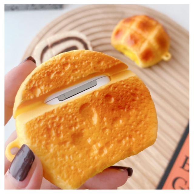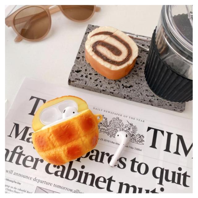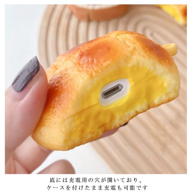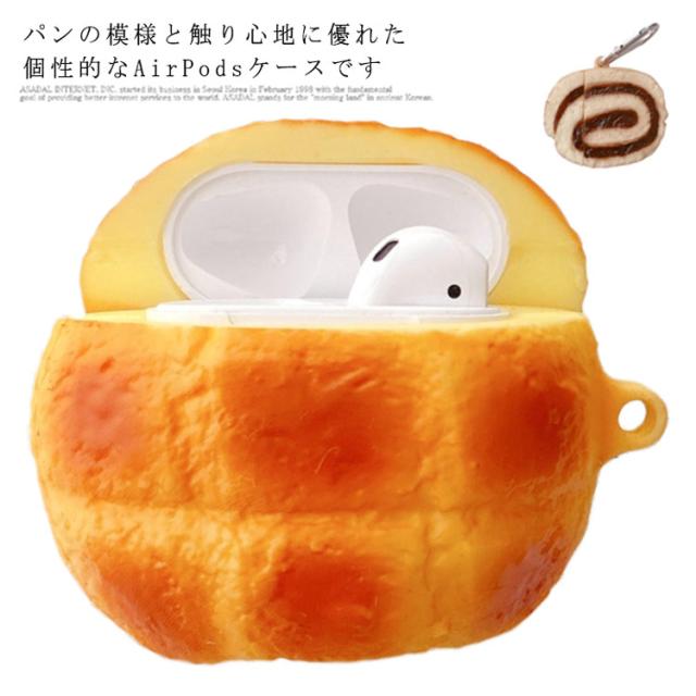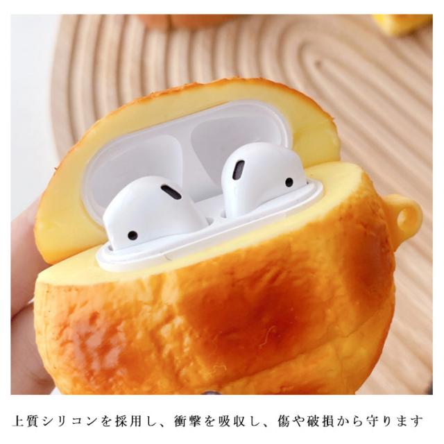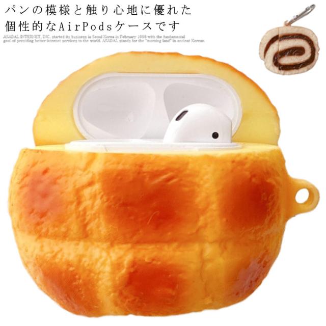 Airpods ケース AirPods1/2/3/Pro エアーポッズケース かわいい 保護カバー 耐衝撃 保護ケース おしゃれ イヤホンケース 個性的 キャラクター 食べ物 パン ビナ付き