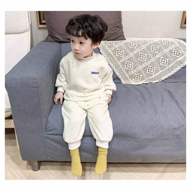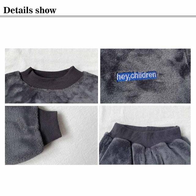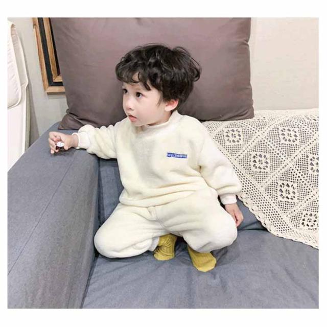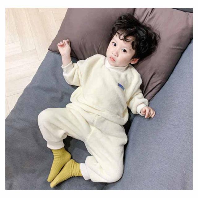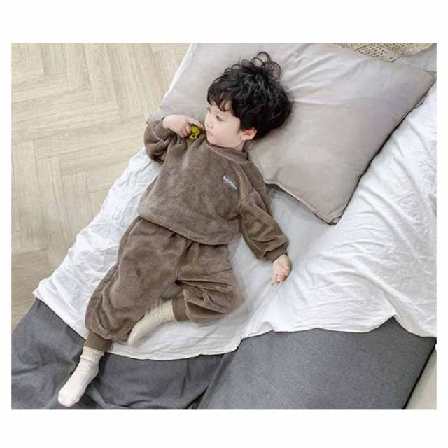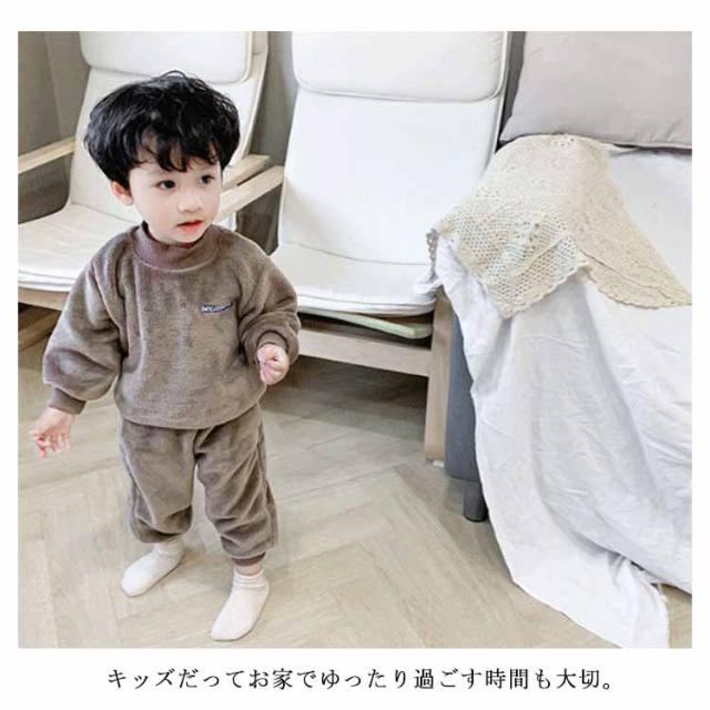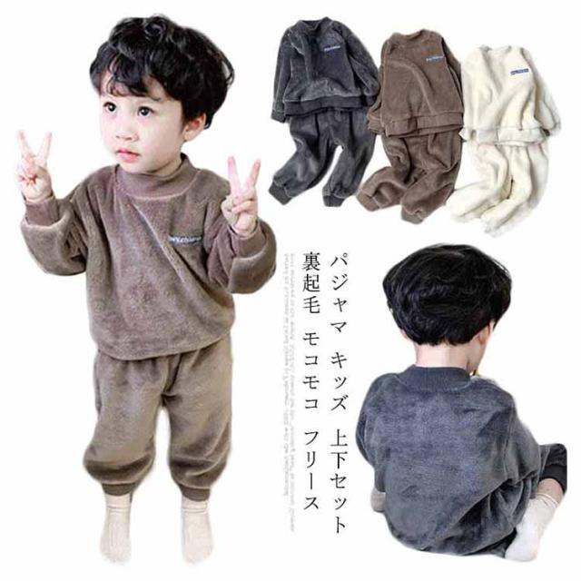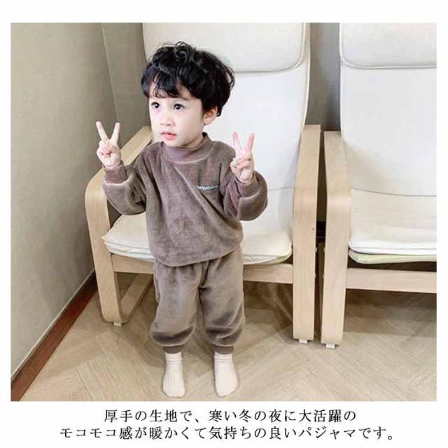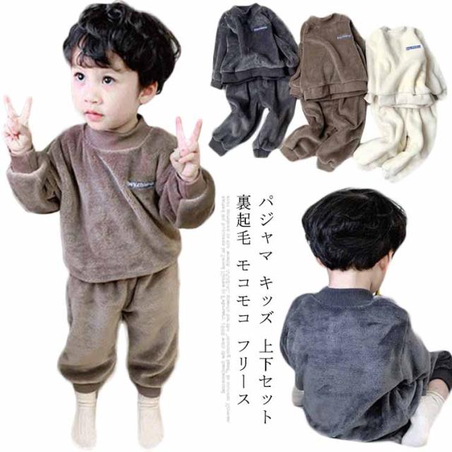 【送料無料】パジャマ キッズ 上下セット 裏起毛 モコモコ フリース 長袖 ルームウエア ベビー 赤ちゃん 秋 冬 男の子 厚手 寝巻き 部屋着 長ズボン 防寒 発熱 暖かい 無地 かわいい 80/90/100/110/120cm