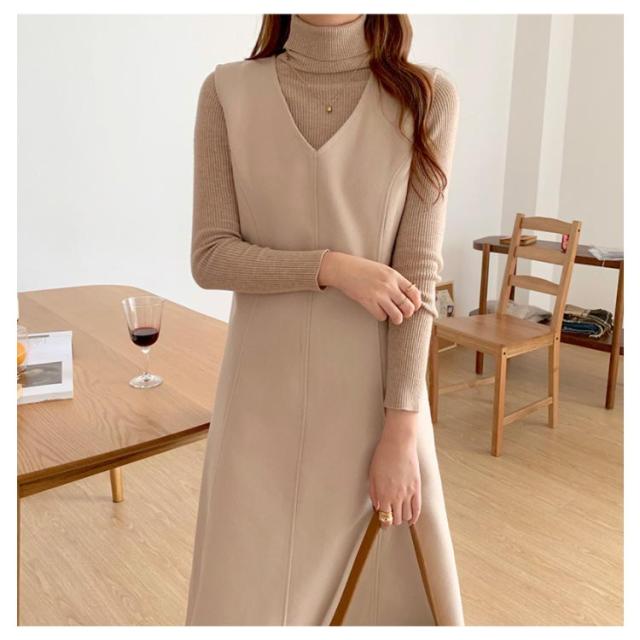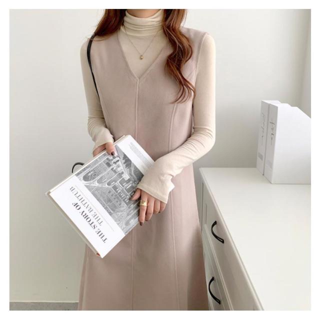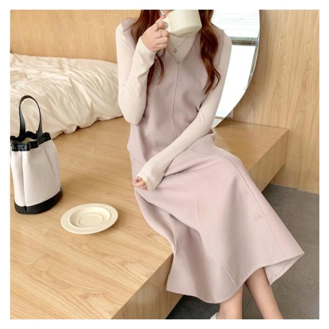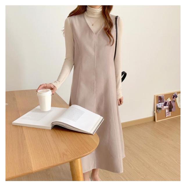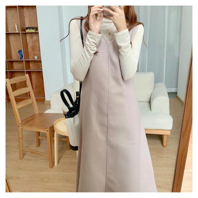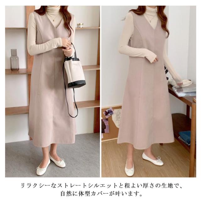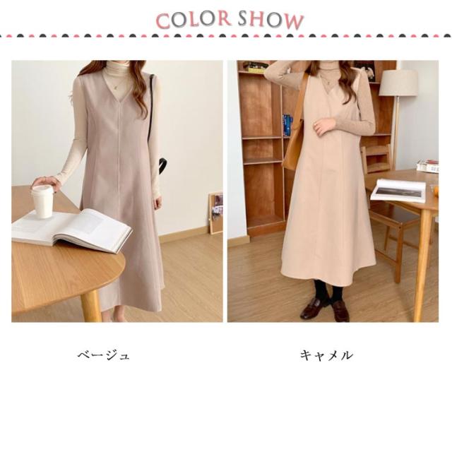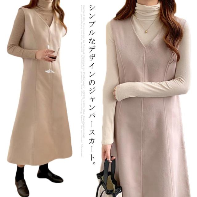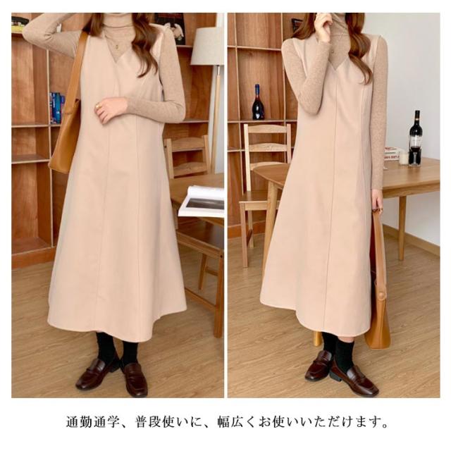 Aラインスカート レディース ジャンスカ ノースリーブ ロング プルオーバー スカート メルトン 通学 Vネック ジャンパースカート 秋 マキシ丈 通勤 エレガント ゆったり おしゃれ ワンピース