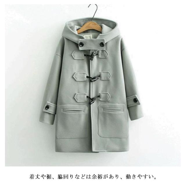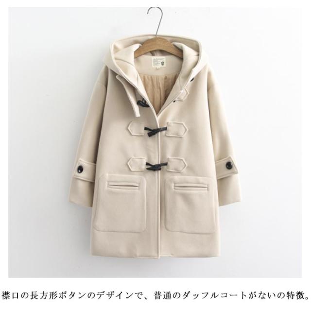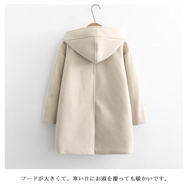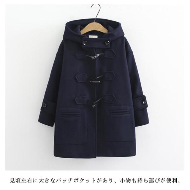 | 通勤・通学にもオススメのダッフルコート。 裏地が厚いで、秋冬には防寒効果が良い。 襟口の長方形ボタンのデザインで、普通のダッフルコートがないの特徴。 フードが大きくて、寒い日にお頭を覆っても暖かいです。 着丈や裾、脇回りなどは余裕があり、動きやすい。 見頃左右に大きなパッチポケットがあり、小物も持ち運びが便利。 学院風の要素を取り入れ、優しさの雰囲気を現れます。 | |