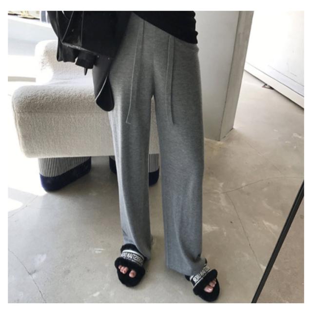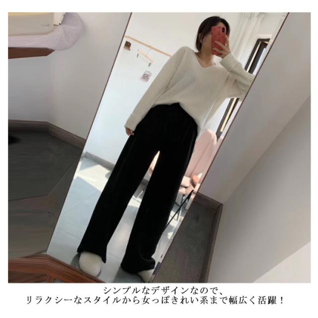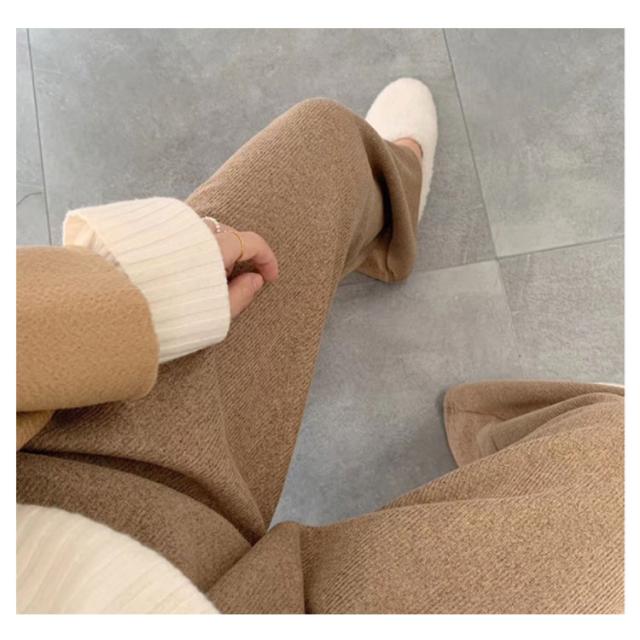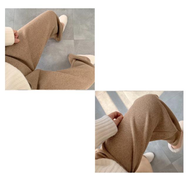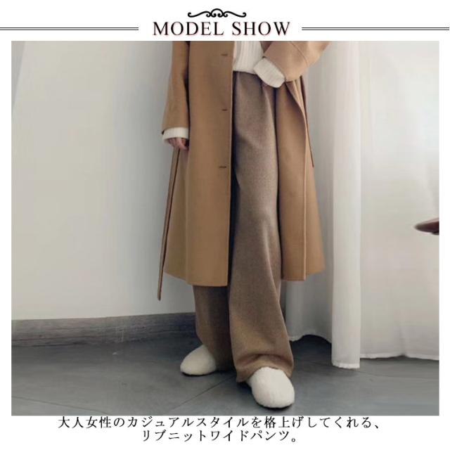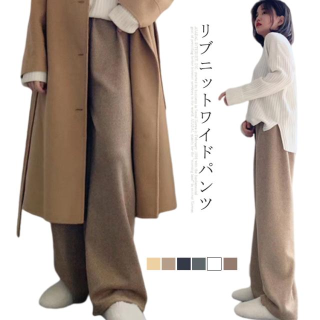 ワイドパンツ レディース ニットパンツ リブニット ニットワイドパンツ ロングパンツ リブ ボトムス ガウチョパンツ ゆったり ロング丈 無地 大人 秋冬 20代 30代 40代 OL ママ 母 OL
