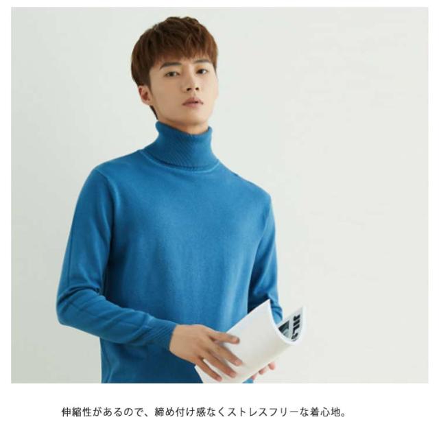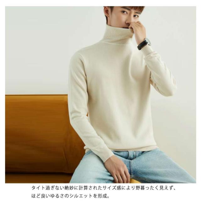 【送料無料】ニット セーター メンズ 全12色 タートルネック リブ 無地 細身 タイト スリム フィット インナー トップス ブラック ホワイト ネイビー 紺 黒 白 大きいサイズ S M L 2L 3L 4L 春 秋 冬 ウール