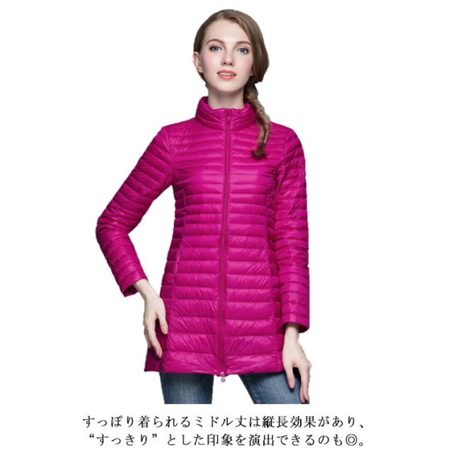 フワッと軽い!超軽量ダウンコート 軽量 ダウンコート ライトダウン 薄型 軽量 ダウンジャケット ダウンジャケット ミドル丈 レディース 大きいサイズ 秋冬 防寒 スリム