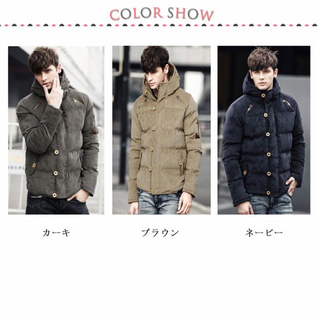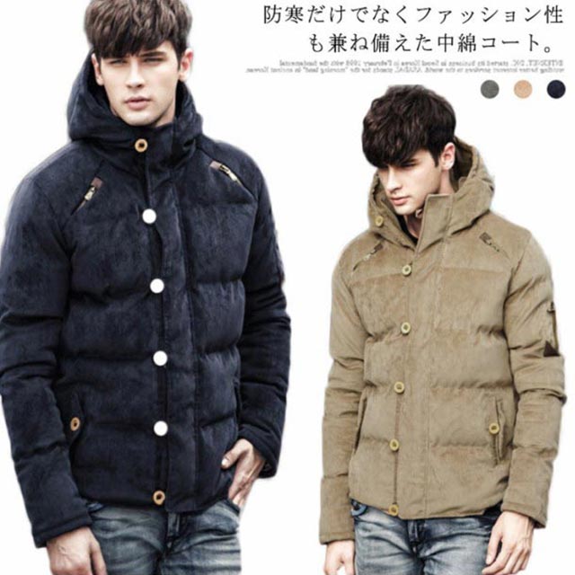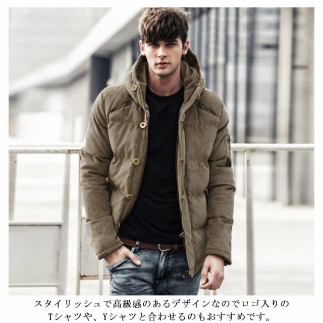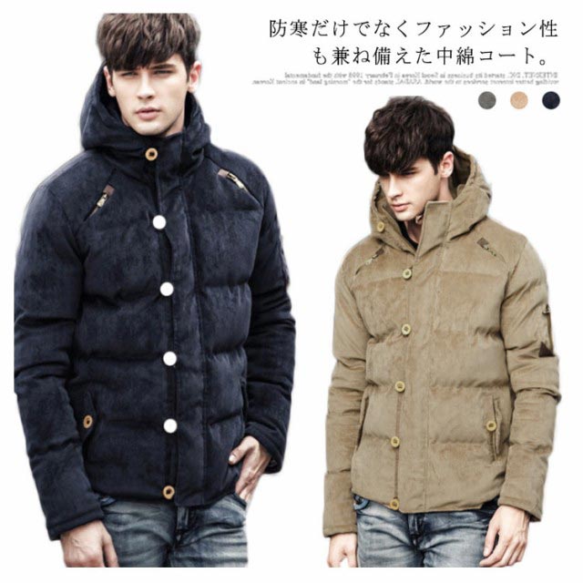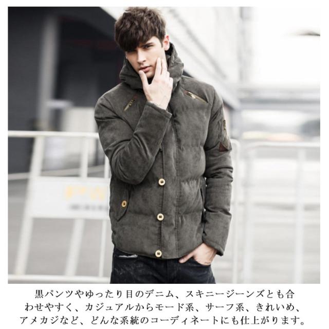 冬物 冬服 メンズ ボリューム ジャケット 中綿 コート フード アウター コーデュロイ ファスナー ボタン 厚手 長袖 秋冬 防寒 ゆったり M L XL XXL 3L 4L 大きいサイズ ネイビー ブラウン カーキ