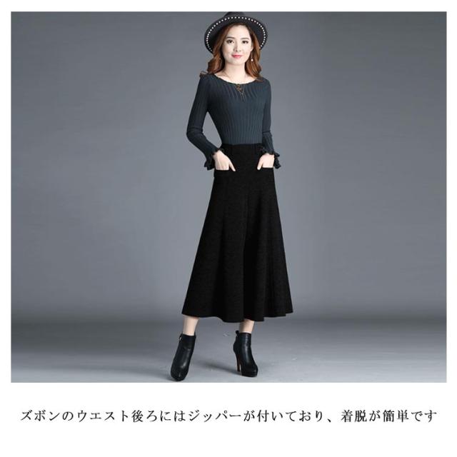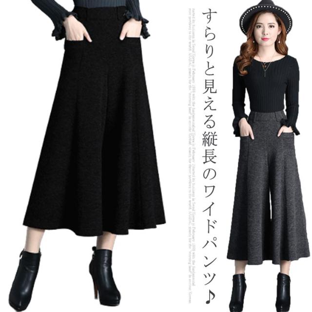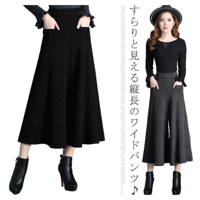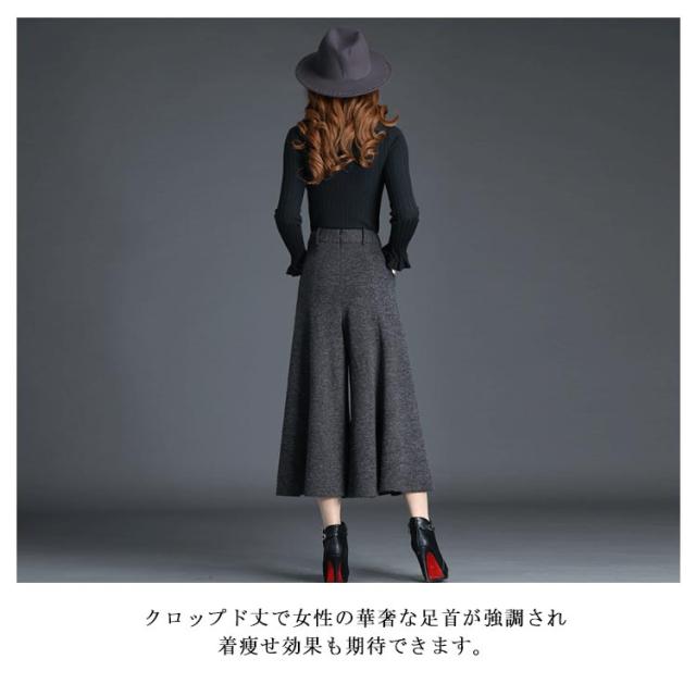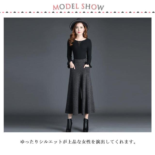 ハイウエスト ガウチョパンツ ゆったり 9分丈 ワイドパンツ 着痩せ ツイード パンツ 秋冬 ロングパンツ ボトムス 体型カバー 大きいサイズ 通勤 お出かけ レディース きれいめ レディース