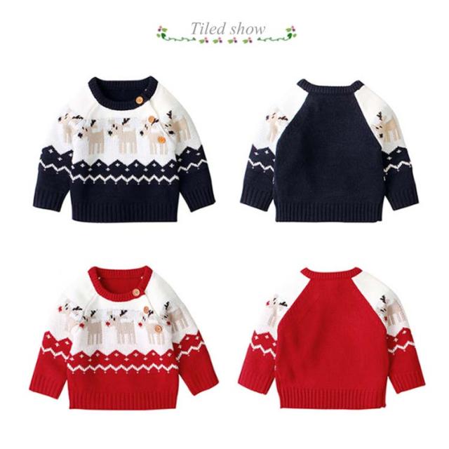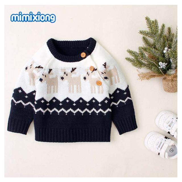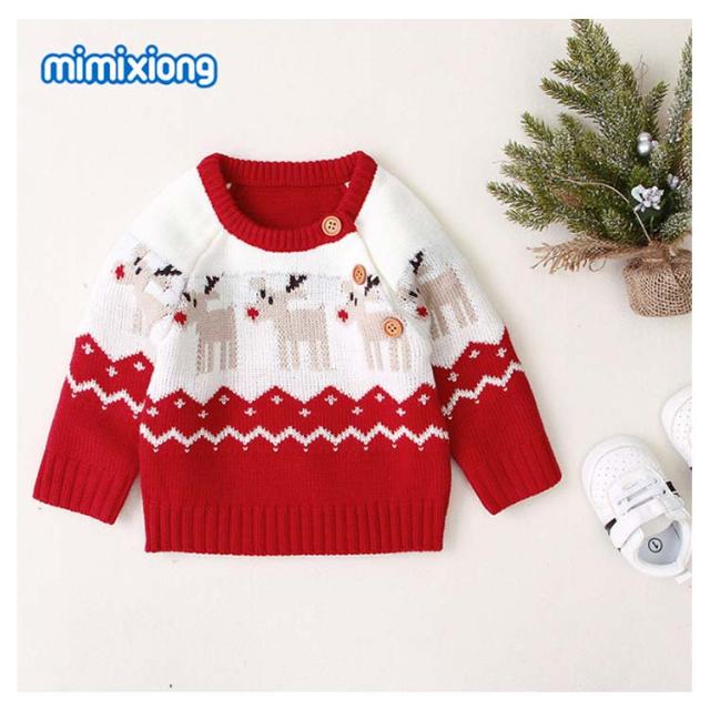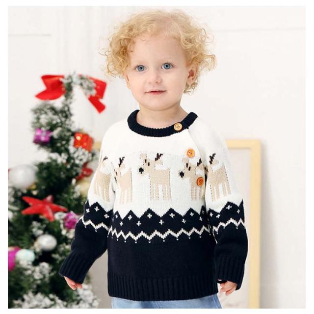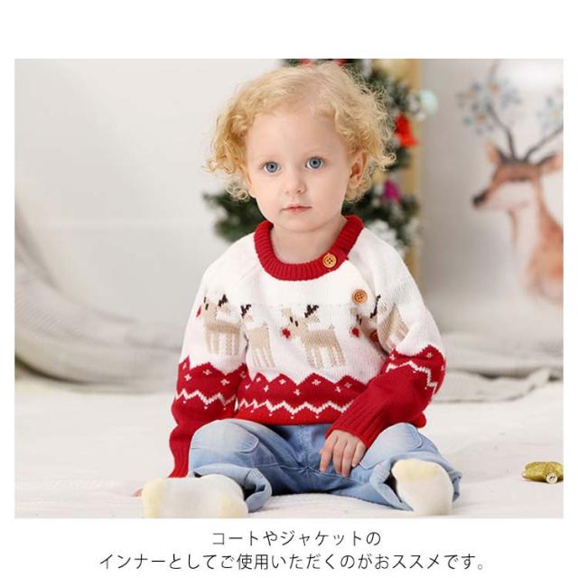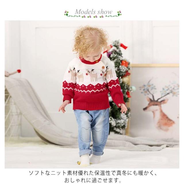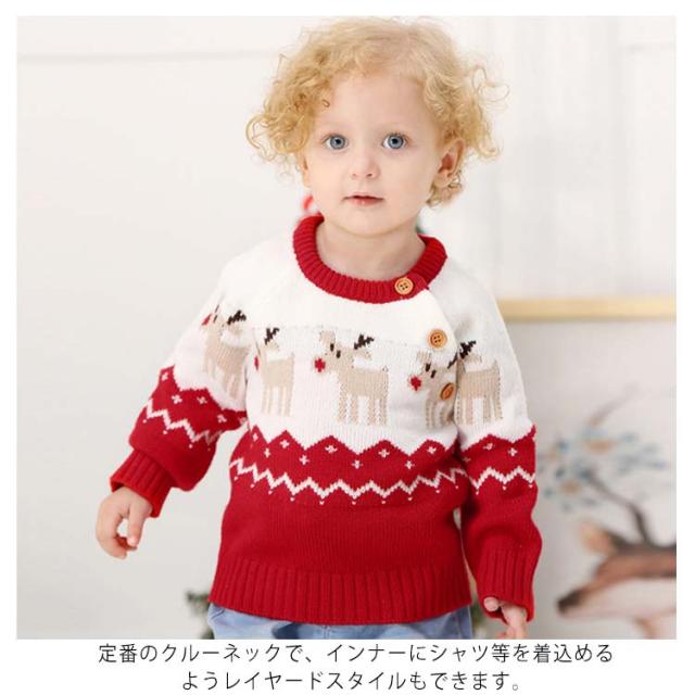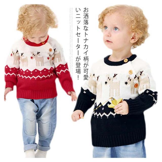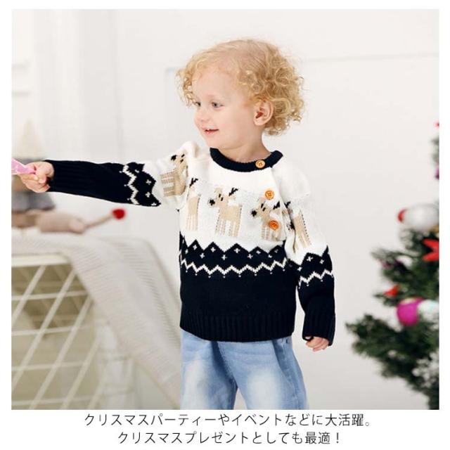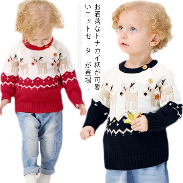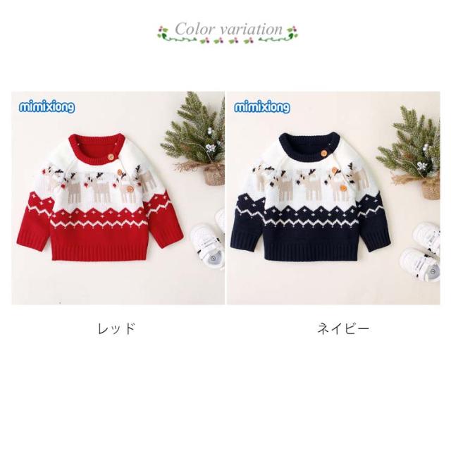 ニットセーター 長袖 トップス 防寒 トナカイ ニット 子供服 赤ちゃん クルーネック ベビー服 男の子 女の子 クリスマス プレゼント 可愛い