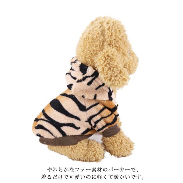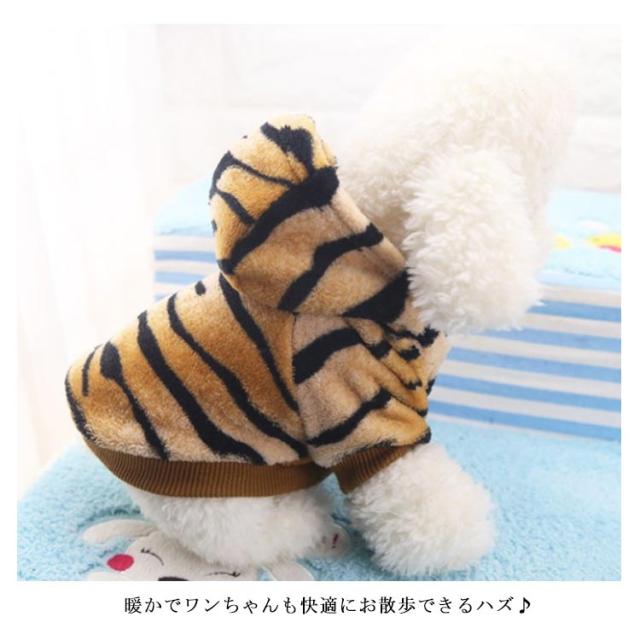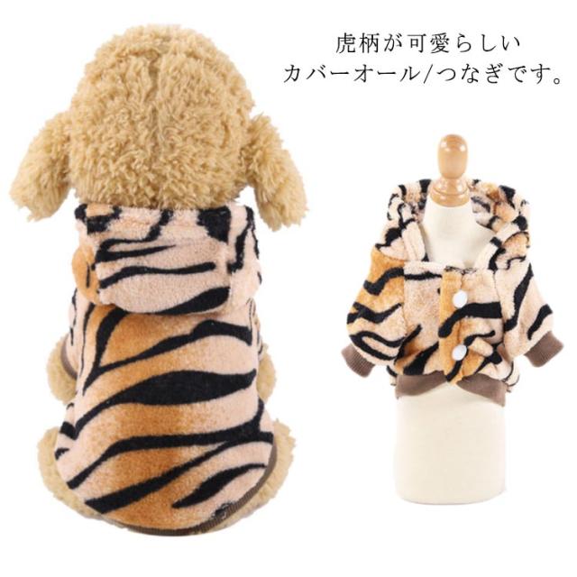 犬服 ドッグウェア 送料無料 つなぎ カバーオール パーカー 虎柄 可愛い 年賀状 秋冬 猫用 ベッドウェア 寅柄パーカー フード付 防寒 干支 寅年 虎 お正月 新年 年賀状 初詣