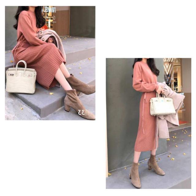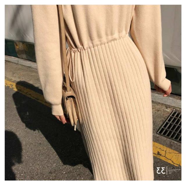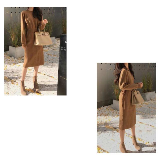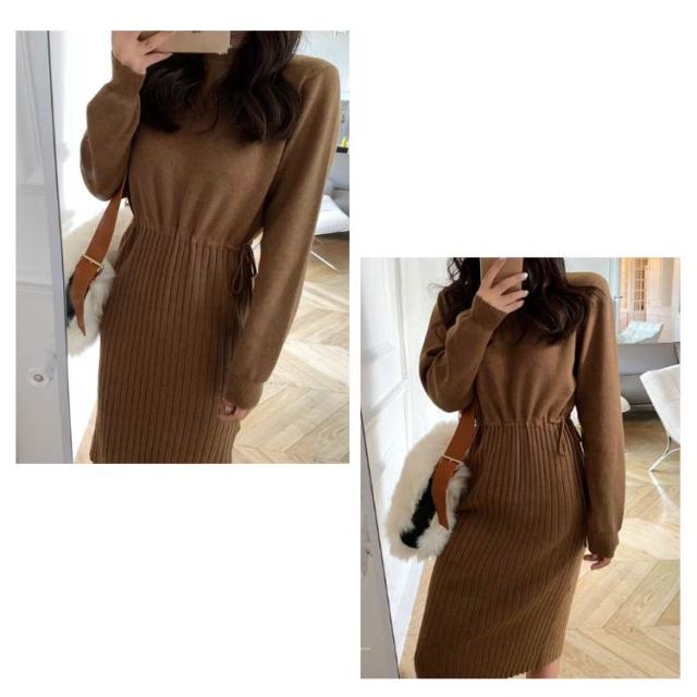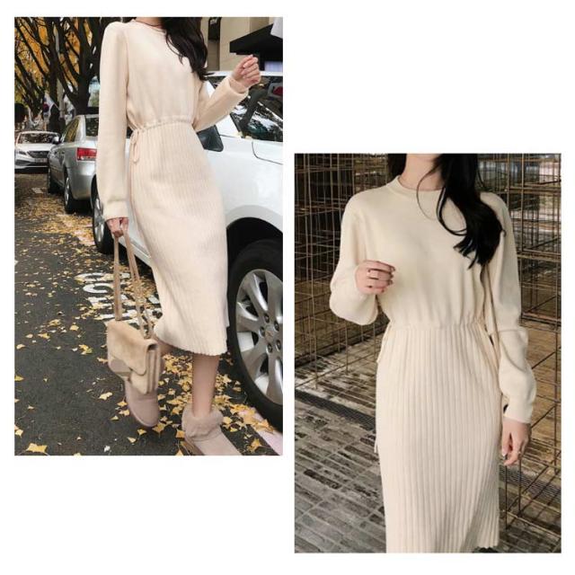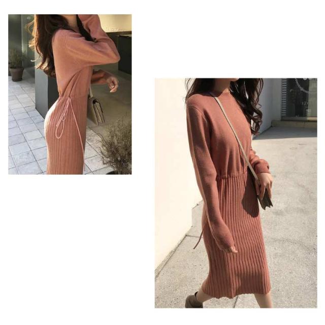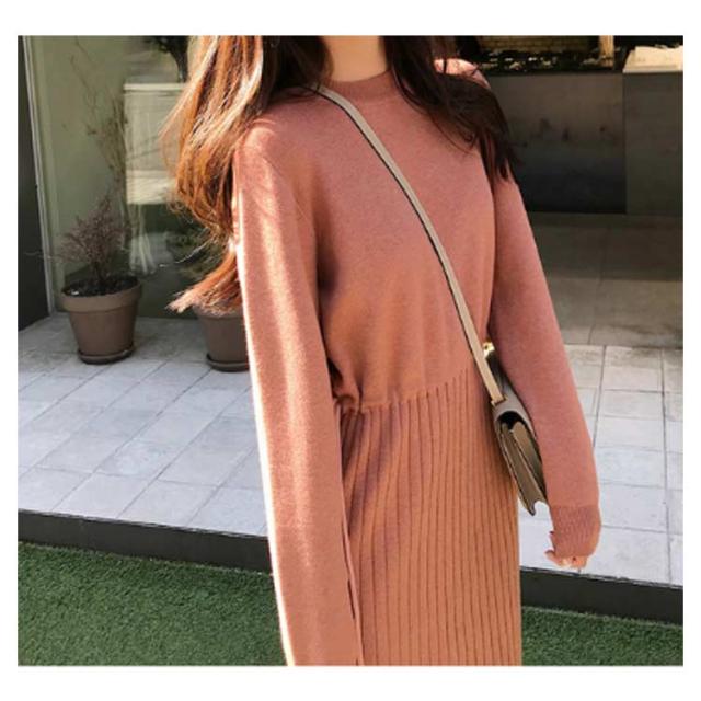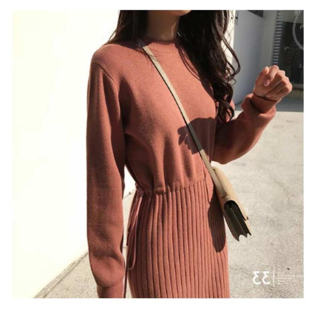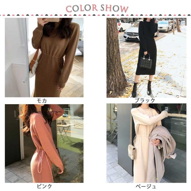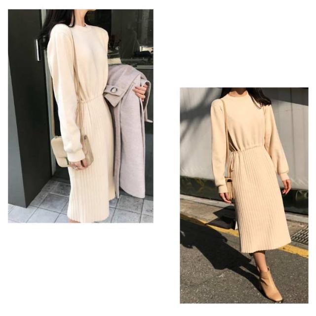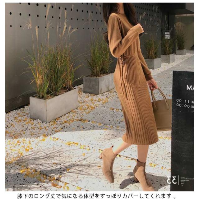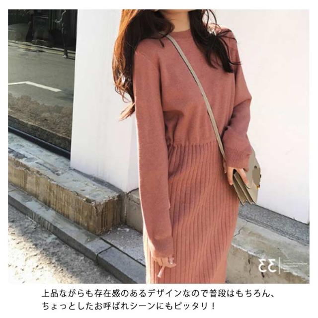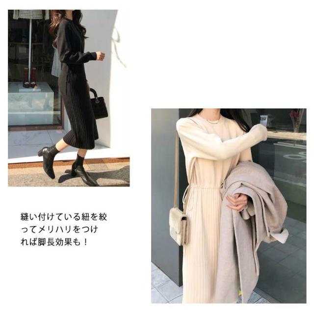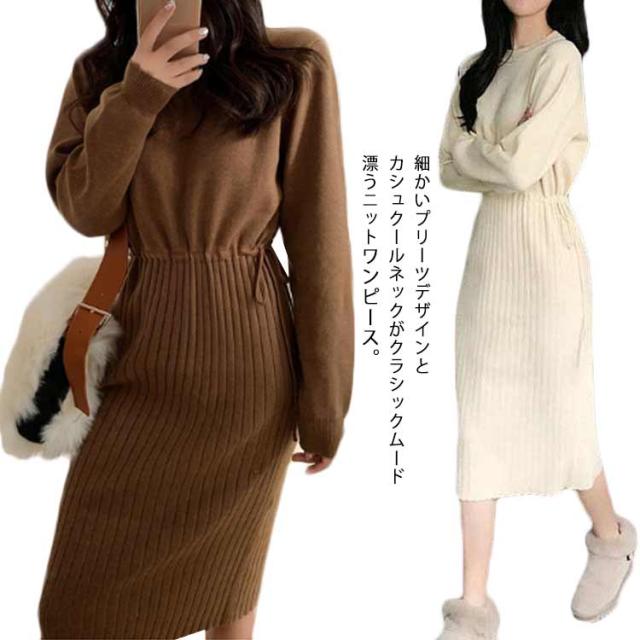 サイド紐付 ニットワンピース ラウンドネック ニット ワンピース プリーツ プリーツワンピース 長袖 ロングワンピース ひざ下丈 ロング丈 ミモレ丈 秋 冬 お呼ばれ オフィス きれいめ 体型カバー 通勤 ゆったり おしゃれ 無地