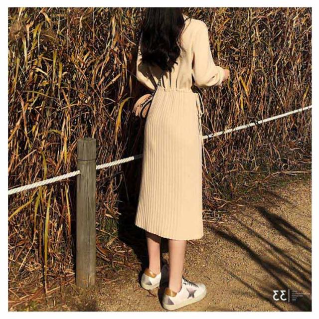 | 細かいプリーツデザインとカシュクールネックがクラシックムード漂うニットワンピース。 ニットが生み出す優しいフィット感はキレイなボディラインをメイク。 膝下のロング丈で気になる体型をすっぽりカバーしてくれます 。 縫い付けている紐を絞ってメリハリをつければ脚長効果も! 上品ながらも存在感のあるデザインなので普段はもちろん、ちょっとしたお呼ばれシーンにもピッタリ! | |