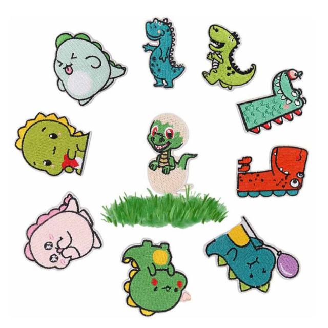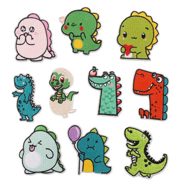 アイロンで一発貼り付け ワッペン アイロン接着 手縫い 手芸 10枚セット 刺繍 可愛い 恐竜 子供用 ファッション小物 小さめ ハンドメイド 簡単 幼稚園 小学校 DIY