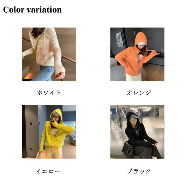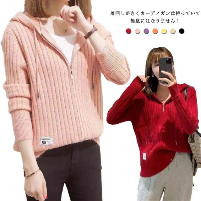 【送料無料】ニット パーカー カーディガン リブ編み レディース スリム フィット 細身 春 秋冬 羽織り トップス 長袖 前開き ミドル丈 フード付き シンプル 厚手 通勤 オフィス おしゃれ 上品