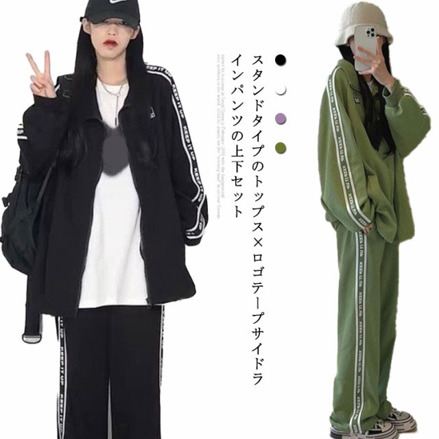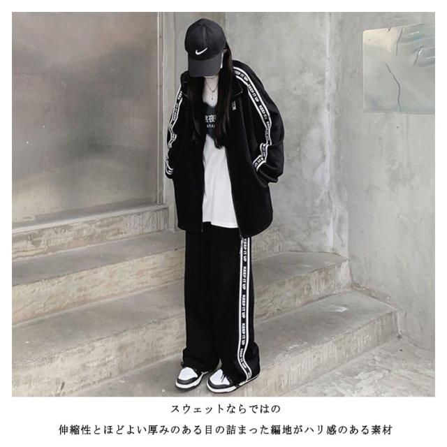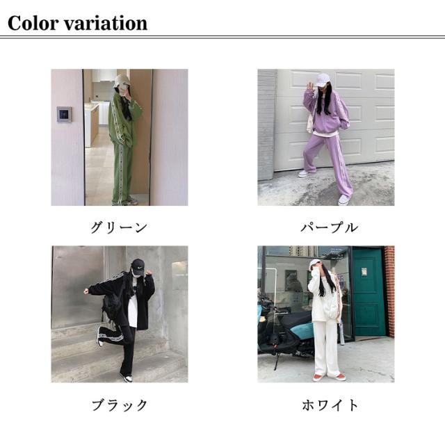 スウェット 上下セット 長袖 パーカー レディース ジップアップ ライン 無地 綿 カジュアル セットアップ ゆったり 長ズボン ハイネック スポーツウェア 運動着 学生 部屋着 韓国 スポーツ ジム おしゃれ S-4L