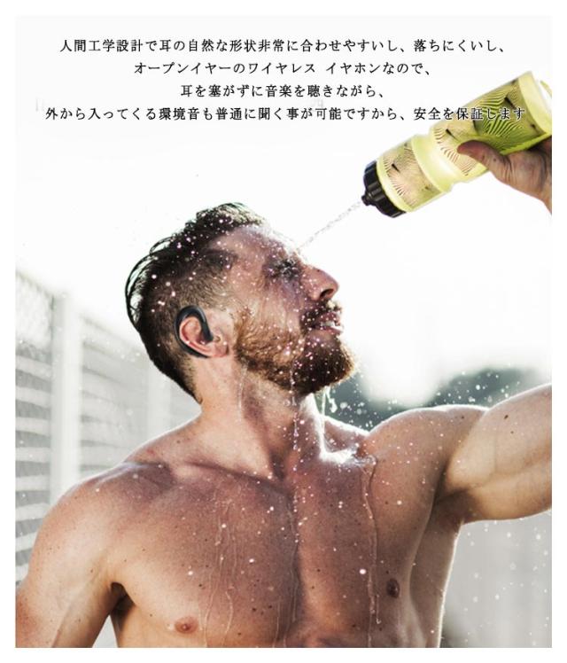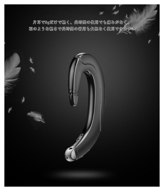 | OPEN式ですので耳道に負担かけない!人間工学設計で耳の自然な形状非常に合わせやすいし、落ちにくいし、オープンイヤーのワイヤレス イヤホンなので、耳を塞がずに音楽を聴きながら、外から入ってくる環境音も普通に聞く事が可能ですから、安全を保証します。 バッテリ長持ち 高性能リチウムバッテリ内蔵、連続通話時間最大11h、待機時間200h、通勤&通学をより楽しい時間にします。 超軽量機体 片耳で9gだけで軽く、長時間の使用でも痛みがなく、羽のような軽さで長時間の着用も負担なく使用できます♪ | |