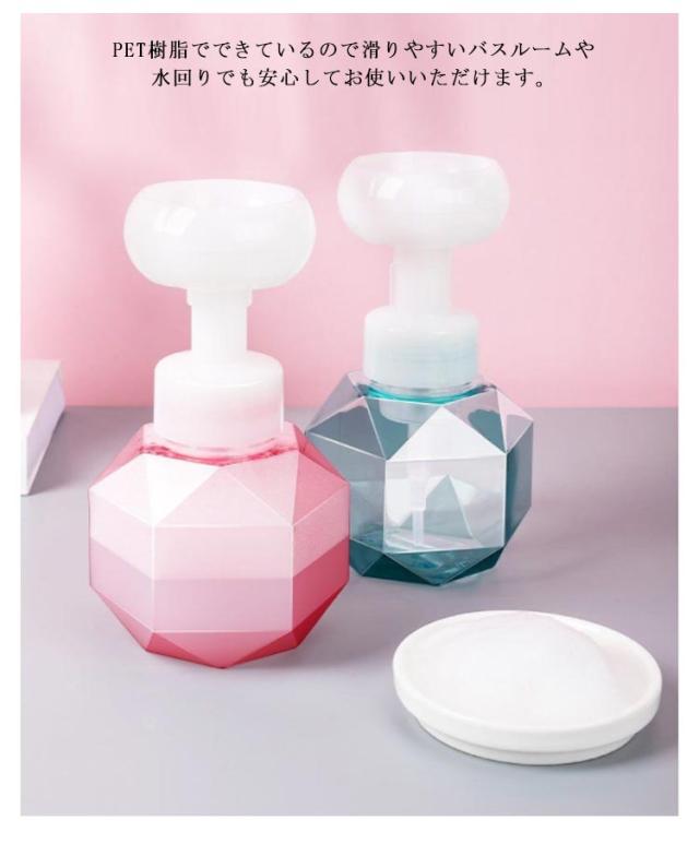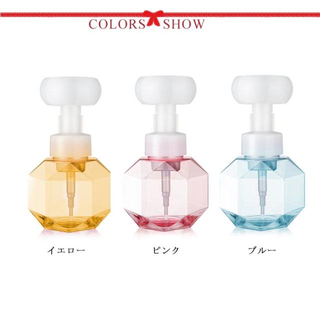 ダイヤ泡ディスペンサーボトル 花型 ムースボトル 泡ボトル 詰め替えボトル ソープディスペンサー シャンプーボトル ソープボトル 詰め替え ハンドソープ 泡 詰替ボトル クリア 透明 ピンク イエロー ブルー