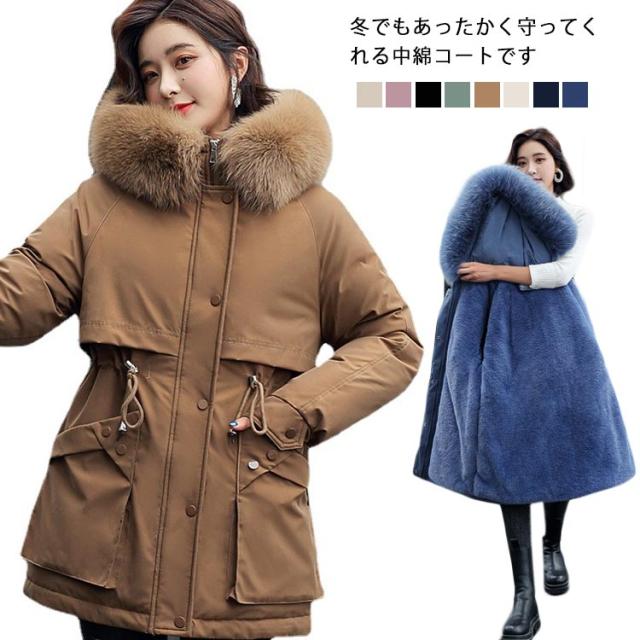 中綿コート レディース ロングコート 中綿 裏起毛 大きいサイズ フード付き ボリューム アウター 春秋 ジャケット ゆったり 冬物 防寒着 通勤 お出かけ