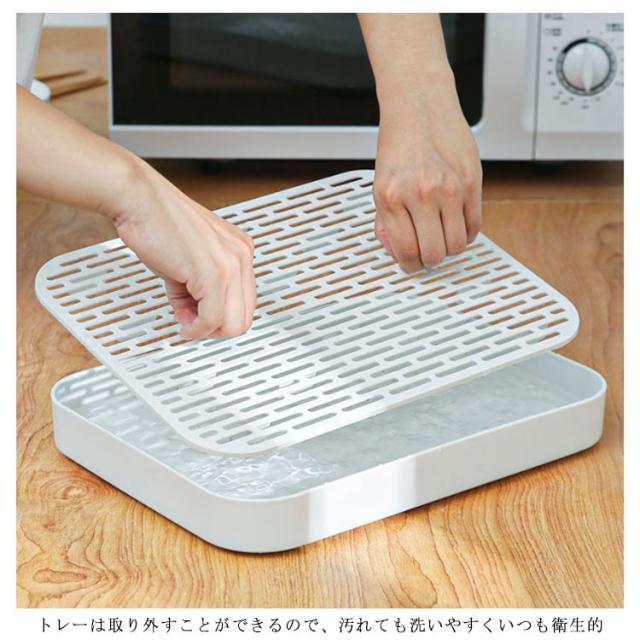 | おしゃれでスリムな整理整頓に欠けないグラスやマグ置きスタンド。 果物、茶碗、カトラリーなどの水切りスペースもなります。 水切れも早く、食器を清潔にをキープ出来ます。 トレーは取り外すことができるので、汚れても洗いやすくいつも衛生的 片側はフチがある斜めラインの水切り時間の短縮する仕様もあります。 洗面台、オフィスや事務所の応接間、給湯室や休憩室など場所でも大活躍。 | |