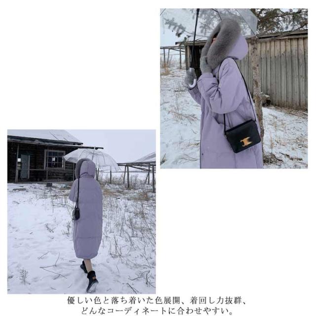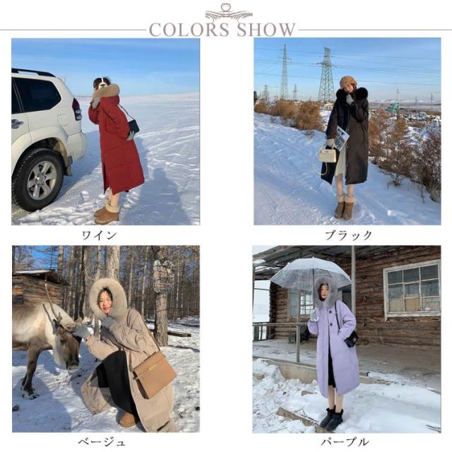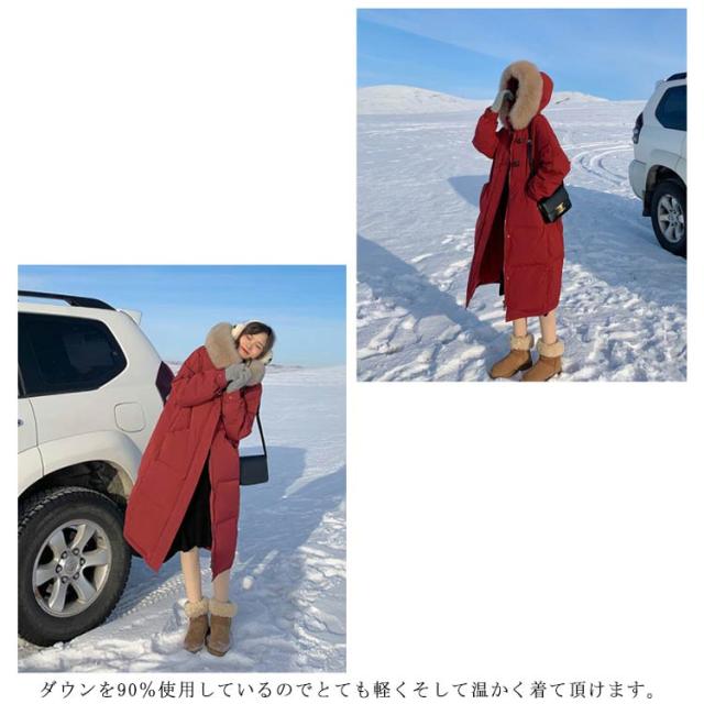 ダウンジャケット レディース ダウンコート ロング丈 暖かい アウター 防寒 長袖 軽量 フェイクファー おしゃれ カジュアル きれいめ かわいい ゆったり 冬物 冬服 厚手 フード付き 通勤 体型カバー?シンプル