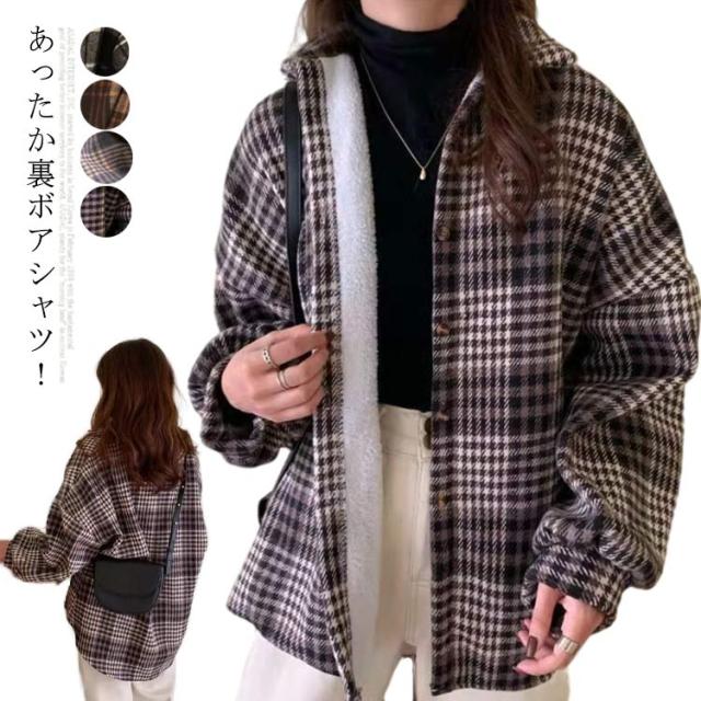 シャツ レディース 長袖 裏ボア 裏起毛 厚手 ロングシャツ チェック柄 シャツ トップス 綿混 ゆったり 大人 カジュアル きれいめ 大きいサイズ 羽織り 防寒 暖かい あったか 体型カバー 前後差 裾 春 夏 秋 冬 秋服 冬服 20代 30代 40代 50代