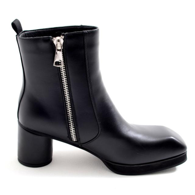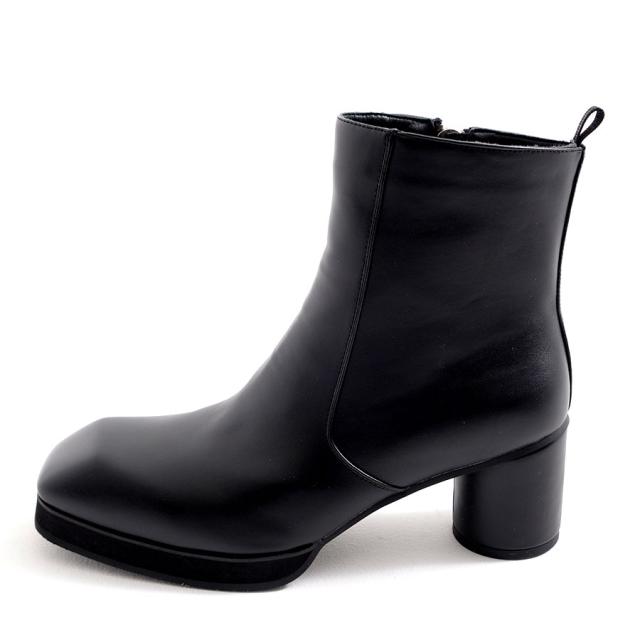 履くだけで脚長効果を発揮する約8cmの高め円柱ヒールで足元に存在感を持ったヒールブーツ。
