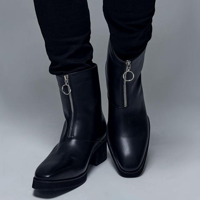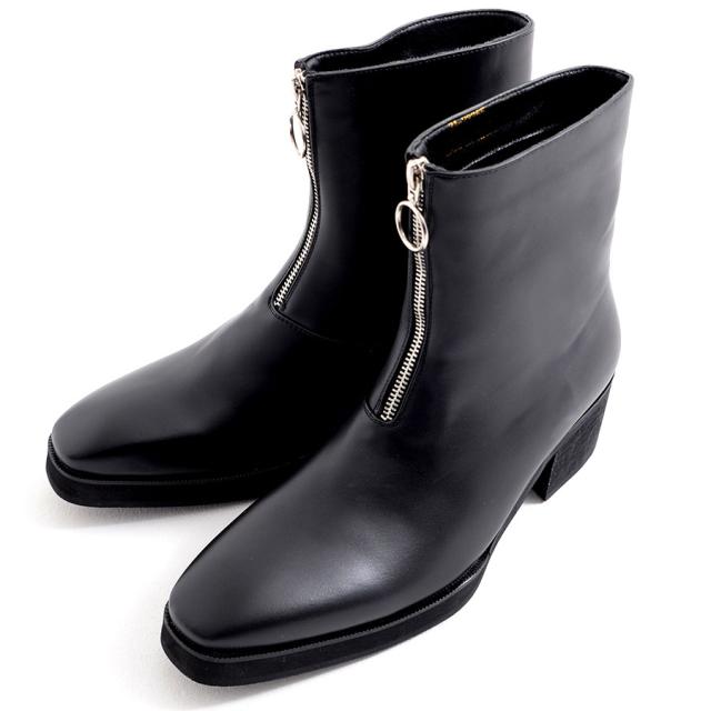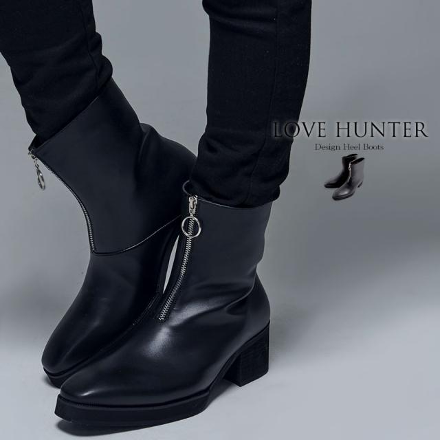 LOVE HUNTER ラブハンター ハイヒール メンズ靴 靴 ショートブーツ ミドルブーツ メンズ フロントジップブーツ 合皮 PUレザー ブラック 黒 25cm 25.5cm 26cm 26.5cm 27cm 27.5cm ヴィジュアル系 ビジュアル系 モード系 きれいめ ファッション 即日発送 [6838]