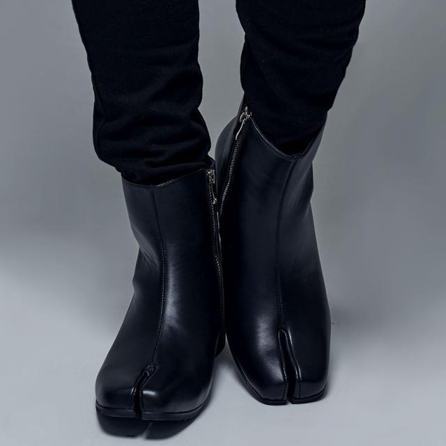 5cmハイヒールで個性的なタビデザインのブーツ。