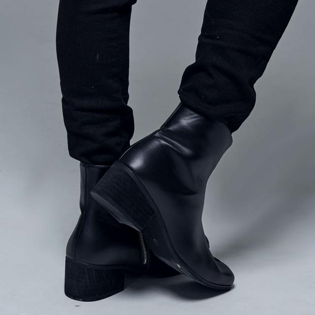 ショートブーツ ミドルブーツ メンズ 厚底 ヒールブーツ サイドジッパー サイドジップ シンプル 無地 合成皮革 PUレザーブラック 黒 ヴィジュアル系 ビジュアル系 V系 visualkei 25cm 25.5cm 26cm 26.5cm 27cm 27.5cm ファッション メンズ靴 靴 即日発送 [6840]