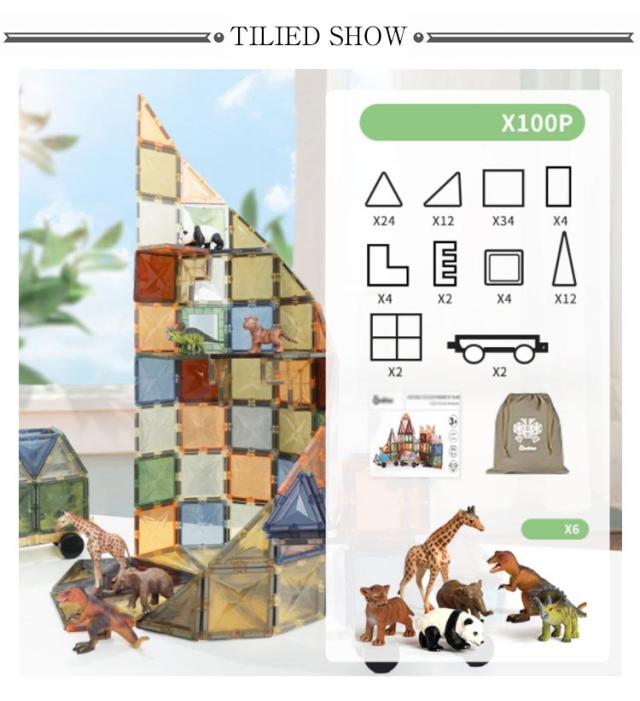6匹の可愛い動物付き マグネットブロック 100pcs 立体パズル 強力 磁力 磁石おもちゃ 積み木 知育玩具 カラフル 知育玩具 知育ブロック マグネット ブロック 森 城 車 大きいサイズ 3歳 4歳 5歳 6歳 7歳 小学生 磁石 積み木 ビッグ磁石 クリスマス 誕生日 プレゼント