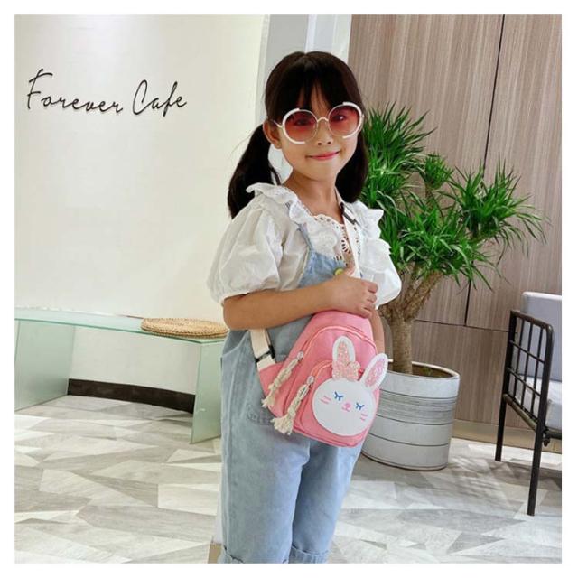 キッズバッグ ウサギ ウサギ耳 兎 ワンショルダー バック ボディバッグ メッセンジャーバッグ キャンバス ボディバッグ キッズ 男の子 女の子 斜めがけバッグ ショルダーバッグ ボディーバッグ 子供 バッグ 幼稚園 保育園 カバン 鞄 小学生 低学年 遠足 入園 誕生日 送料無料