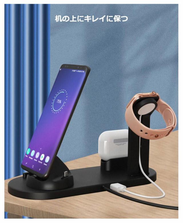 ワイヤレス充電器 3in1 ワイヤレス充電器 18W apple watch 充電器 4in1 ワイヤレス充電器 スタンド iphone airpods 同時充電 3in1 iphone 充電器 置くだけ アップルウォッチ 充電器 type-c タイプc アップルウォッチ 充電器