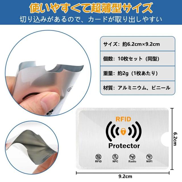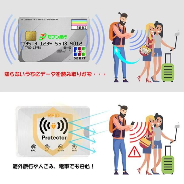 RFID(無線周波数識別)の技術を採用させます。RFIDは私たちの日常生活の中で密接に関連している通信技術であります。正反面とも磁気防止材料で作ったので、電磁波や磁力で様々なカードが互いに干渉して磁気が消したり、データ破損したりする現象が防げます。 |