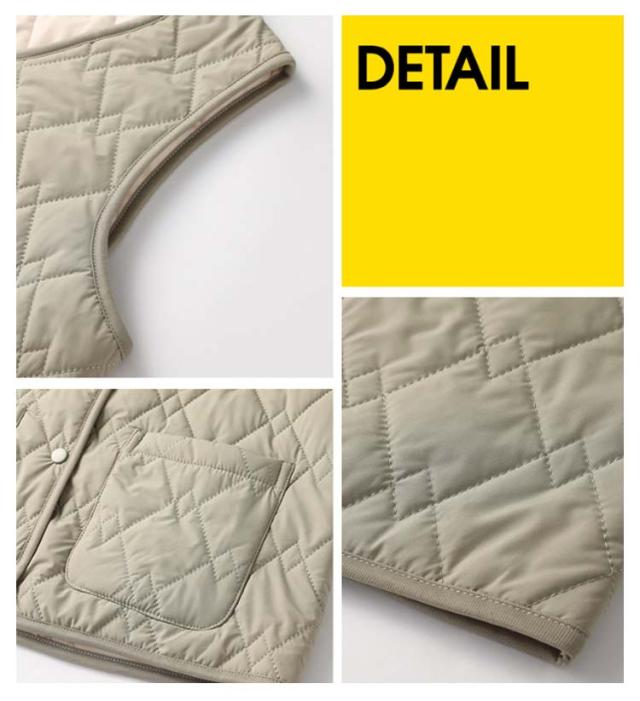 | 肌寒い季節はアウターベストとして、寒さが厳しい時はコートインのインナーダウンとして着回しができます スナップ?バックで着脱が容易です 防寒風ロック熱量 胸の開けたことスナップ?バックで着脱が便利です | |