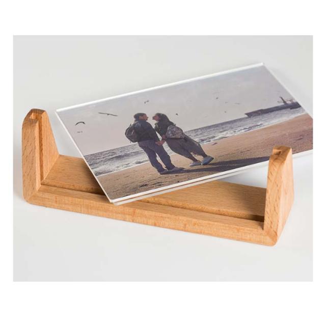 | 天然木ベースに透明のアクリル板が差し込んである写真立て。 天然木の質感が柔らかで美しく透明度の高いアクリルとあいまって洗練された印象のフォトフレームです。 安定感抜群で自立できるから、デスクトップスやリビングや玄関、ベッドサイドテーブルなど様々な場所で使うことができます。 写真やポストカードを飾ることで、その空間に温かみや個性を加えることができます。 | |
