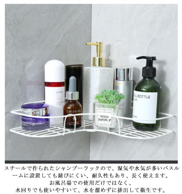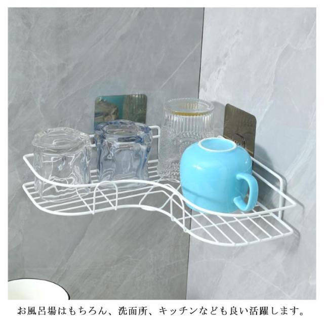 お風呂 【同色2点セット】お風呂 シャワーラック 粘着シート付き マルチラック コーナーラック 三角 壁面収納 バスルーム キッチン 省スペース ラック 隙間収納 洗面所 スチール シンプル 【同色2点セット】お風呂 ホワイト 水切りラック バス用品 キッチン用品 整理棚