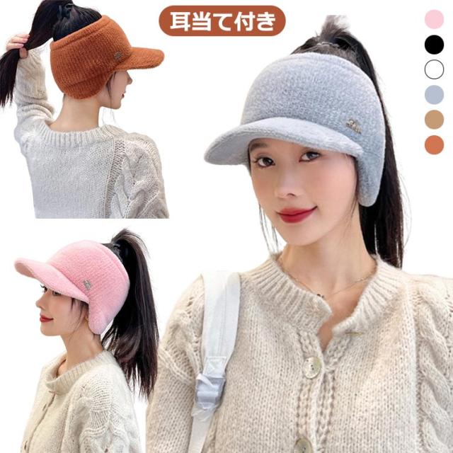 耳あて付き ゴルフ ニット帽 イヤーマフ ボア ニット帽 レディース 帽子 つば付き ファー 冬 スキー スノボ 防寒 耳当て 耳付き帽子 プレゼント アウトドア おしゃれ かわいい ニットキャップ ニット帽子 耳つきキャップ