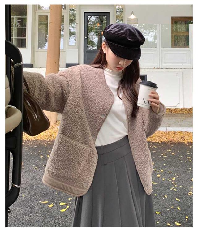 | ノーカラーで首元すっきり、ゆるく着こなせる暖かジャケット。 表面はふわふわのボア素材、裏面はしっとりとした生地感。寒い季節も優しく包み込んでくれるアイテム。 顔まわりをスッキリと魅せてくれる、ノーカラーデザイン。 もこもことした暖かみのある生地で柔らかな雰囲気に仕立てくれます。 見た目以上に軽く、さっとコーディネートに取り入れやすいのも魅力。 コンパクトな丈感は、パンツやスカートだけでなく、ワンピースなどに合わせてもバランスよく着こなせます。 シンプルで大人な雰囲気に着こなせ、マフラーやストールとの相性も抜群♪ 寒さが残る今の時期だからこそ着たい、大人カジュアルなデザインアウターです。 | |