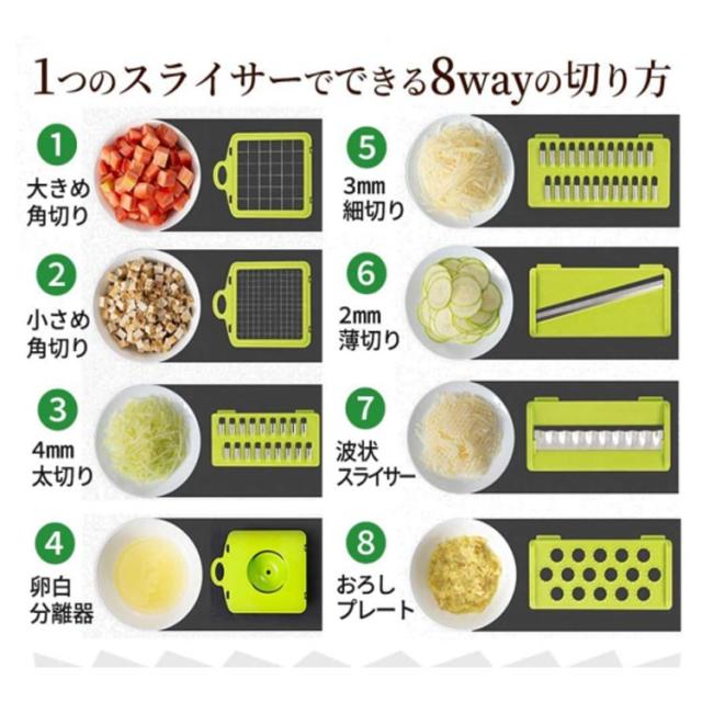細切り スライサー 大根 野菜 スライサー セット 1台8役 千切り 多機能 指切り防止 水切り 千切り 安全ホルダー みじん切り キャベツ 薄切り 千切りスライサー プログレード 人参 サラダ 玉ねぎ