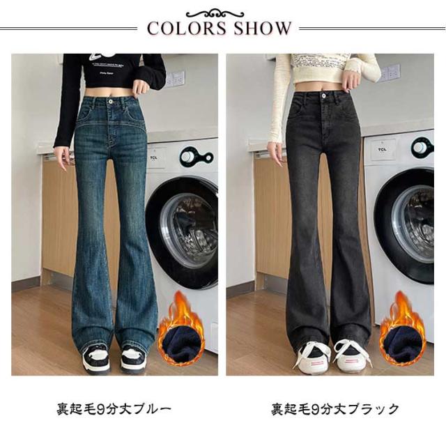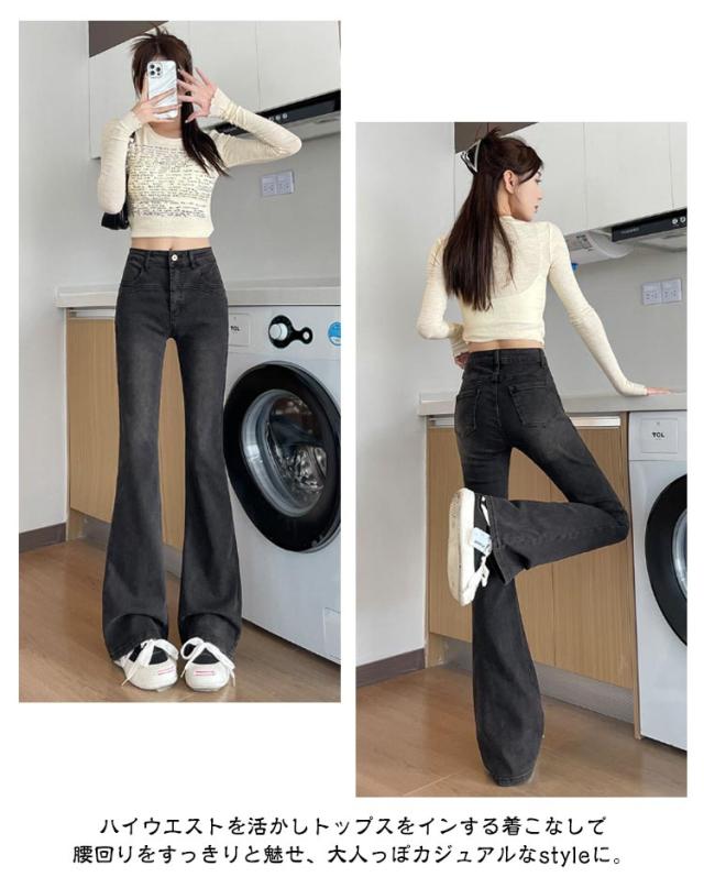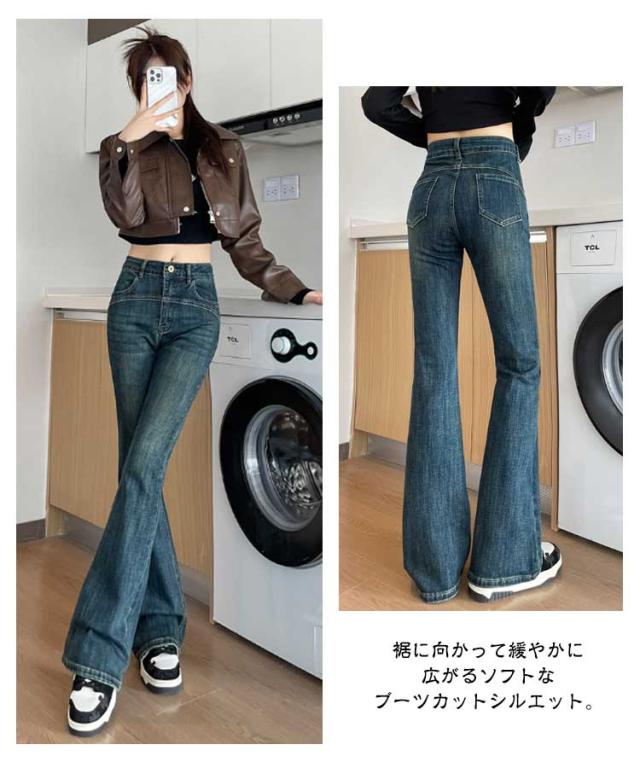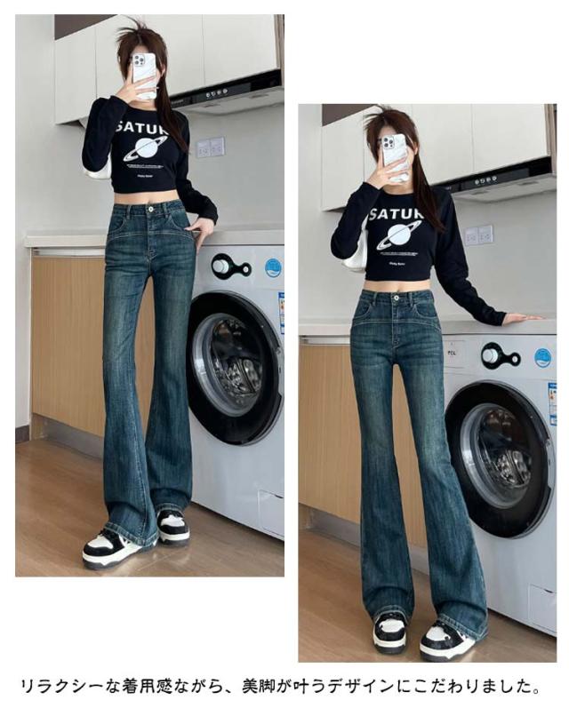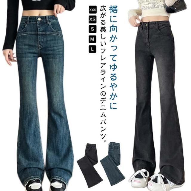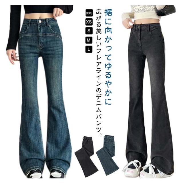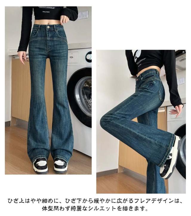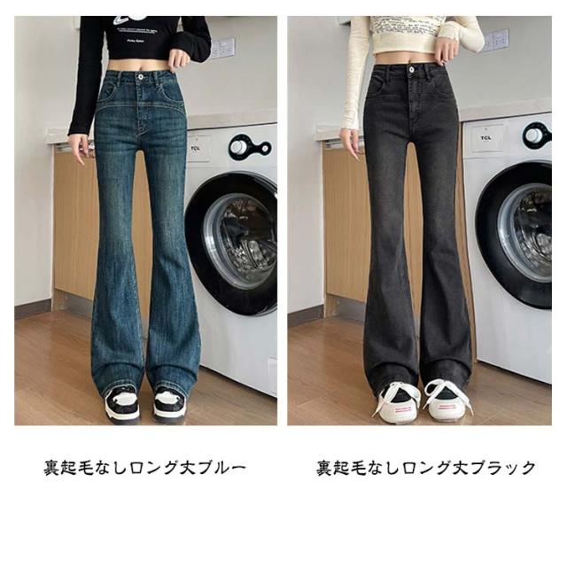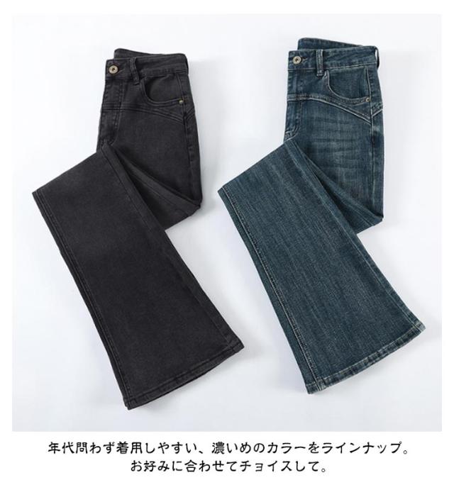 ハイウエスト フレアデニムパンツ 選べる2丈 レディース フレアパンツ パンツ 送料無料 高身長 低身長 ボトムス ストレッチ ブーツカット 美脚 ジーンズ 送料無料 ストリート ジーパン デニム 裏起毛なし 裏起毛 スタイルアップ シンプル