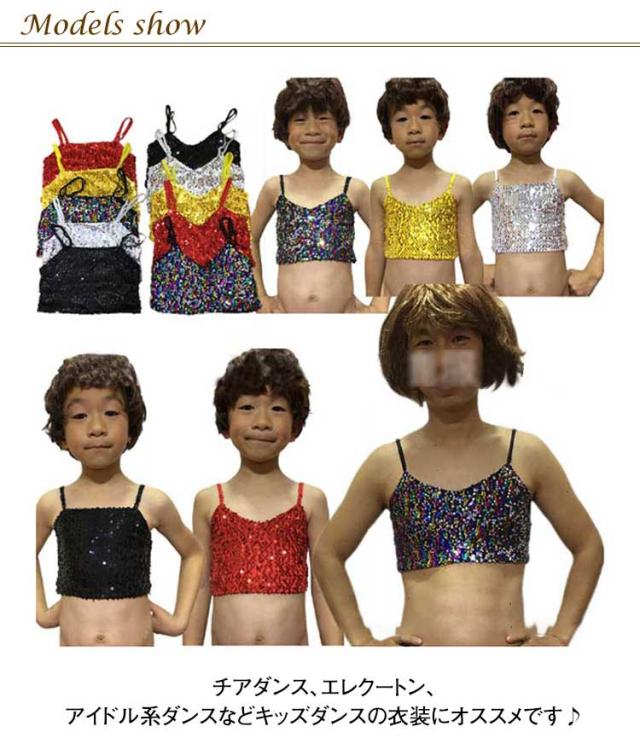 キッズ トップス スパンコール 派手 チューブトップ キャミソール タンクトップ キラキラ スパンコールキャミソール キッズ 社交ダンス ヒップホップ ステージ衣装 目立つ キッズ ジュニア ダンサー