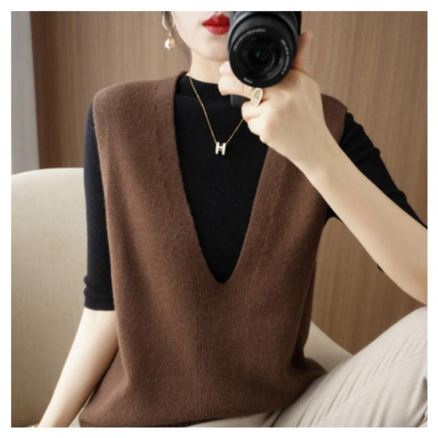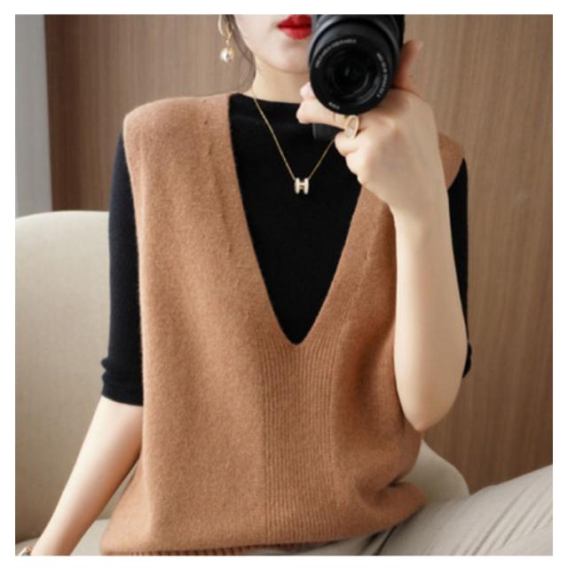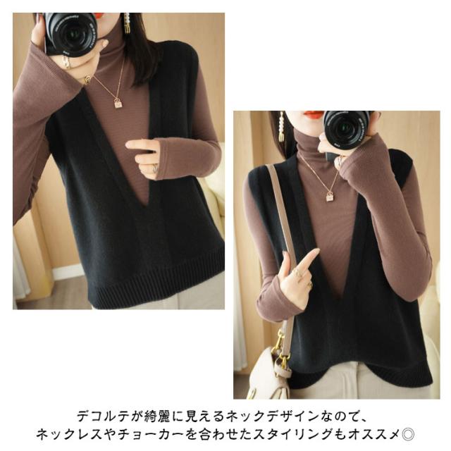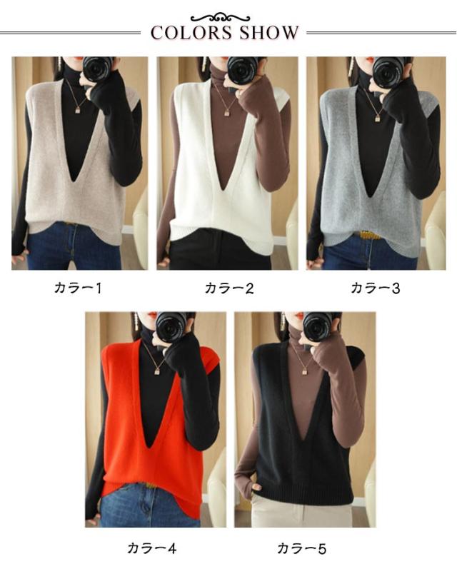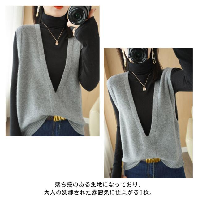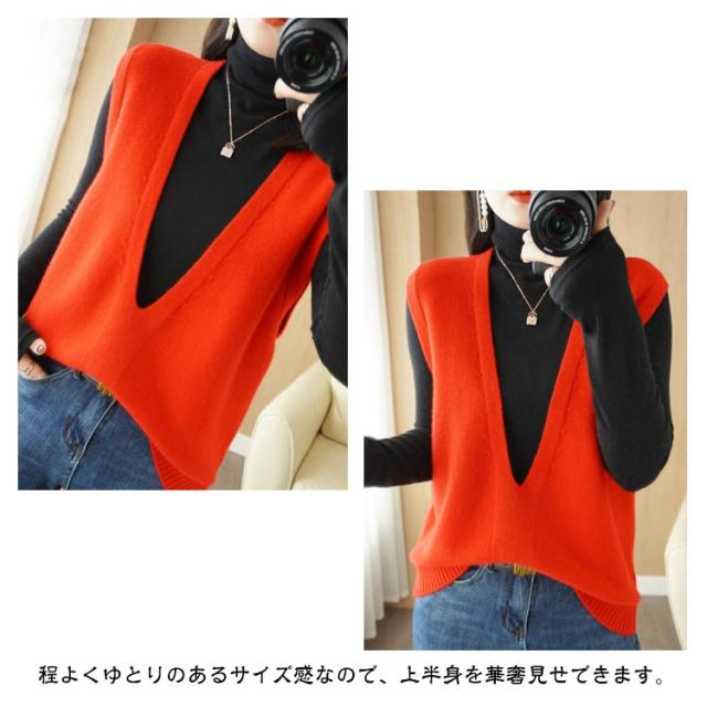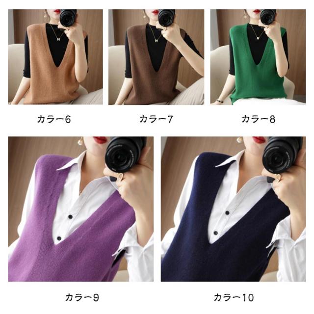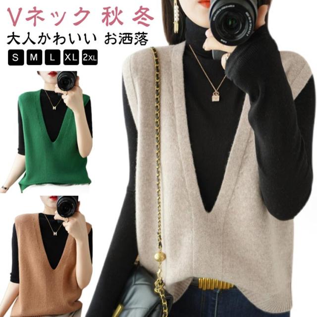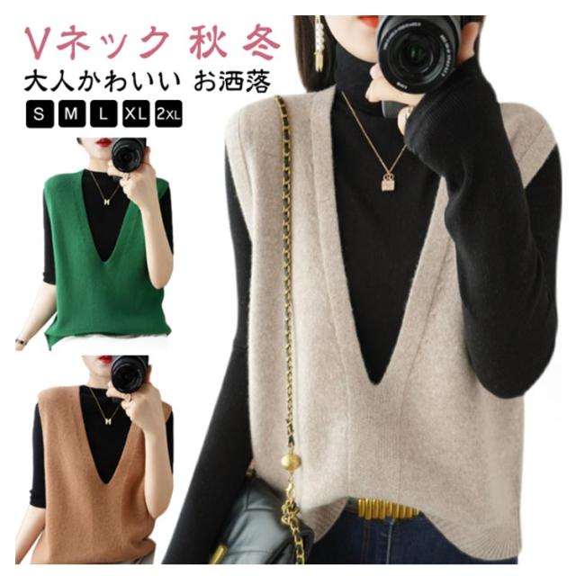 送料無料 ニット ニットベスト ノースリーブ セーター Vネック レディース 大人 シンプル 重ね着 トップス チュニック ベスト レイヤード ゆったり お洒落 プルオーバー 体型カバー 大人かわいい 送料無料 カジュアル 通勤