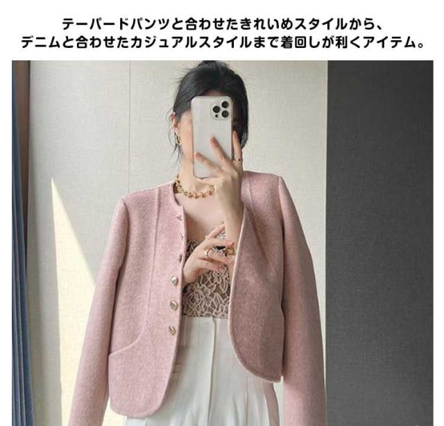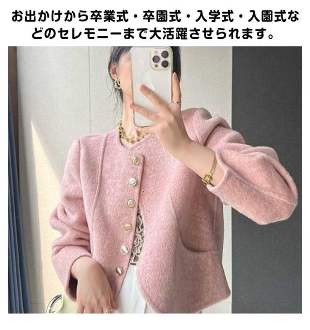 レディース ツイードジャケット ジャケット ノーカラージャケット ジャケット 通勤 オフィス 長袖 カラーレス 華やか 入学式 フォーマル ノーカラージャケット ノーカラー ママスーツ ママ 母 結婚式 卒業式 スーツ 母 春