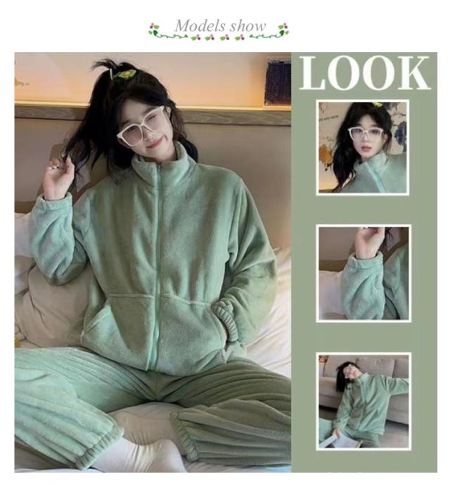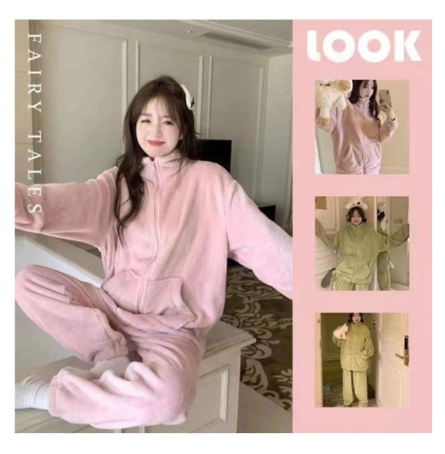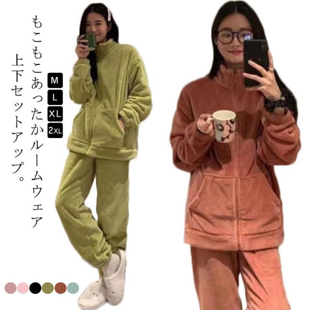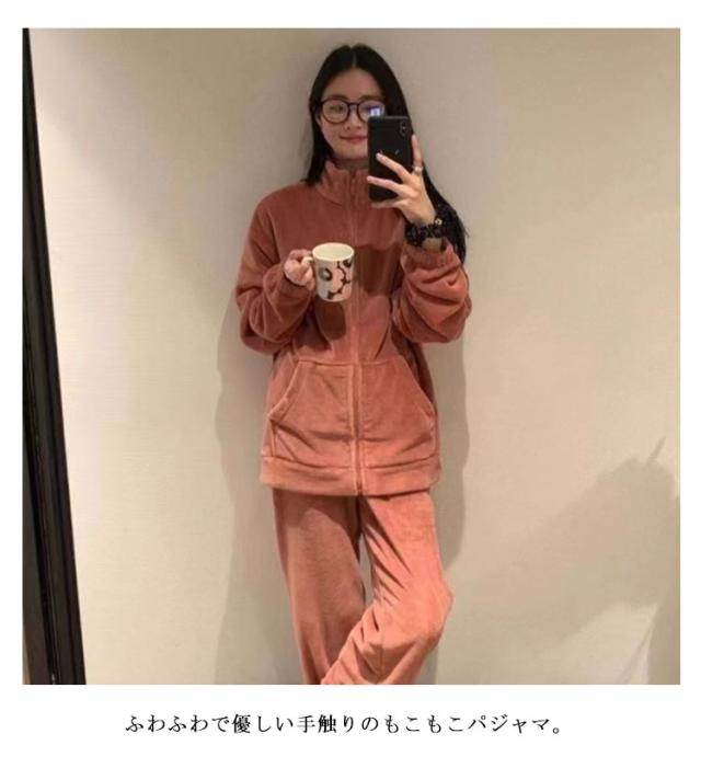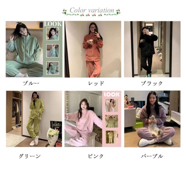 立ち襟 パジャマ ジップアップ ナイトウェア 長袖 レディース もこもこ 厚手 上下セット 暖かい 秋冬 ルームウェア 羽織り 保温 長ズボン セット 部屋着 前開き 防寒対策 かわいい おしゃれ ピンク ブラック グリーン パープル ブルー レッド