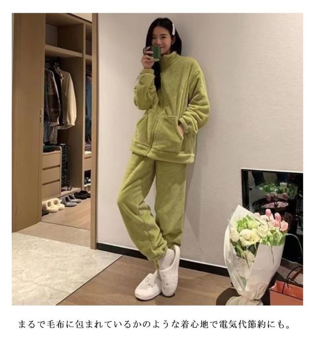 | もこもこあったかルームウェア上下セットアップ。 ふわふわで優しい手触りのもこもこパジャマ。 冬でもぽかぽかあたたかく快適に過ごせます。 まるで毛布に包まれているかのような着心地で電気代節約にも。 | |