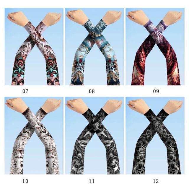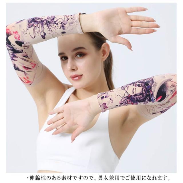 アームカバー アイスシルク コスプレ UPF50+ UVカット 2枚入り 速乾 タトゥースリーブ 腕カバー メンズ レディース 刺青 入れ墨 入墨 仮装 冷感 防犯用 接触冷感 通気性 涼しい 日焼け防止 吸汗 アームカバー ストレッチ